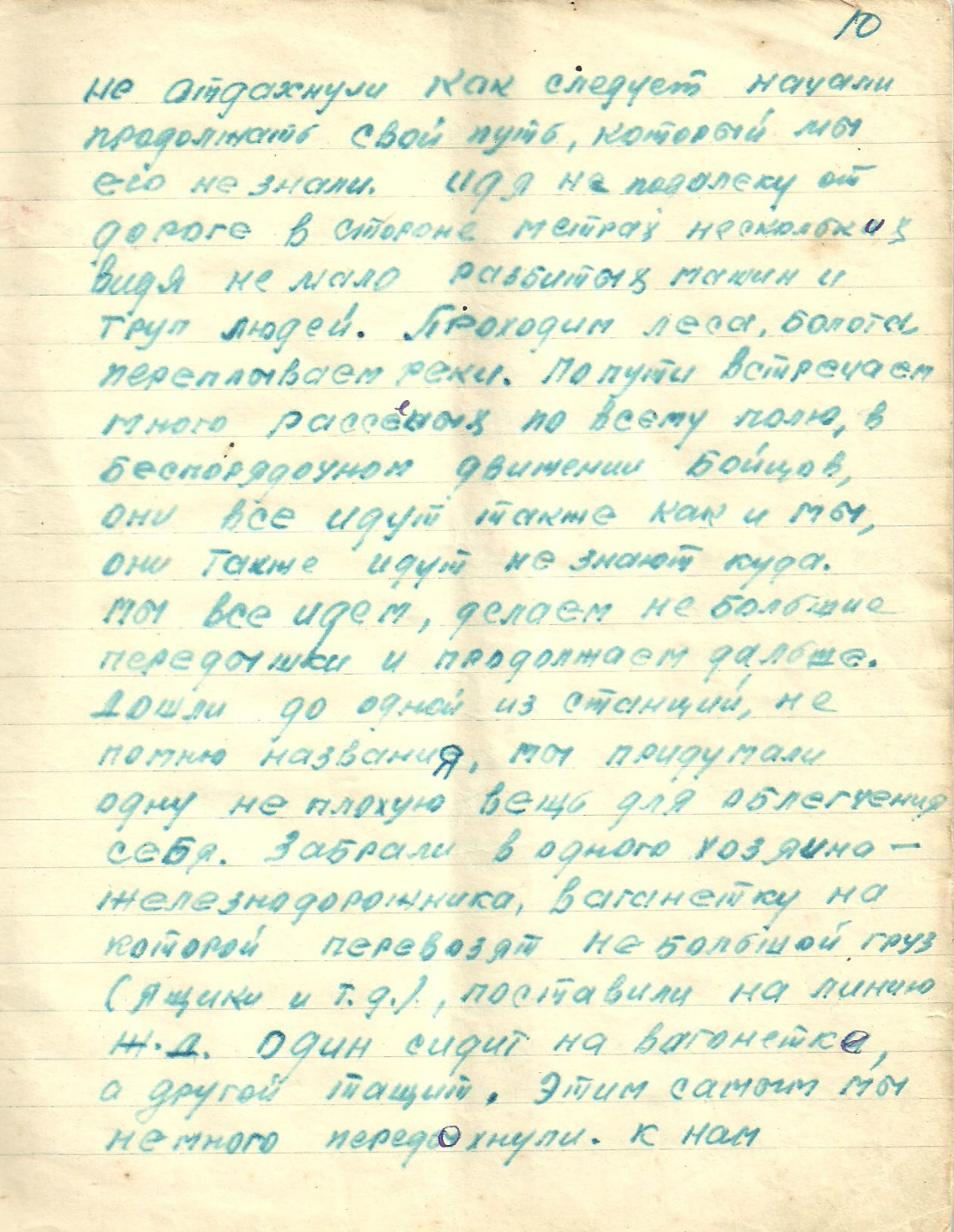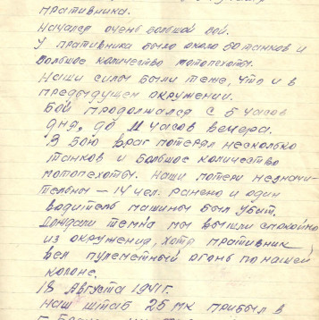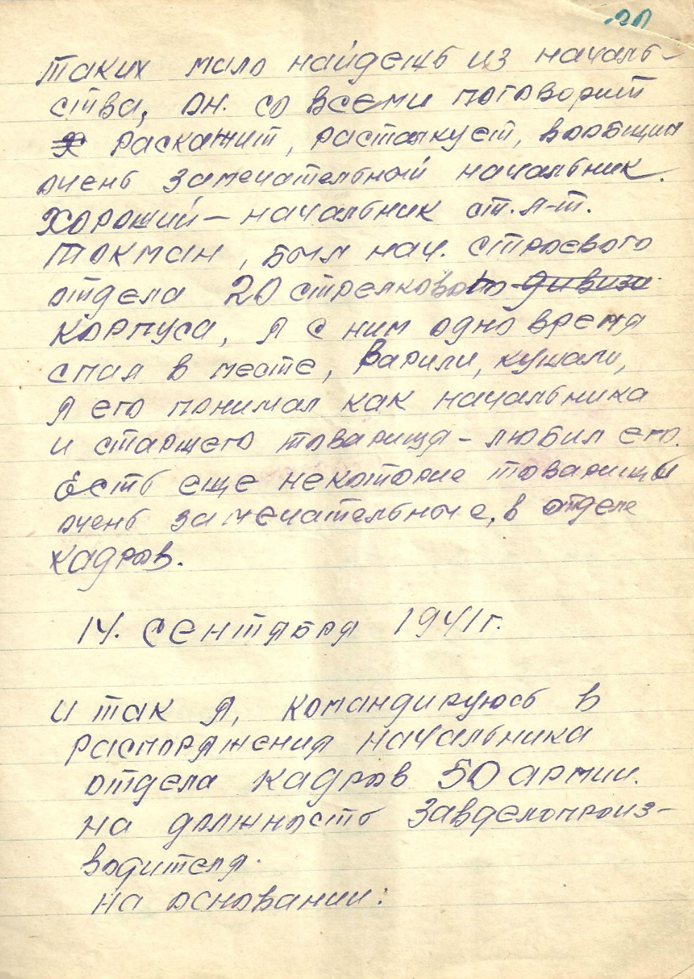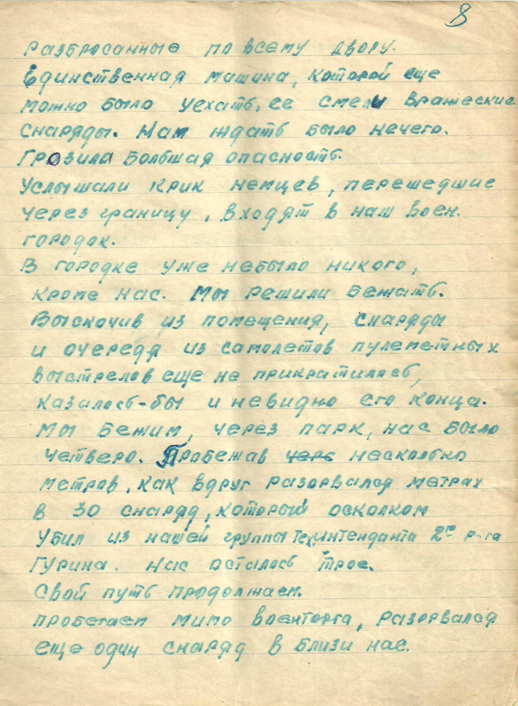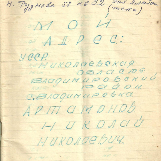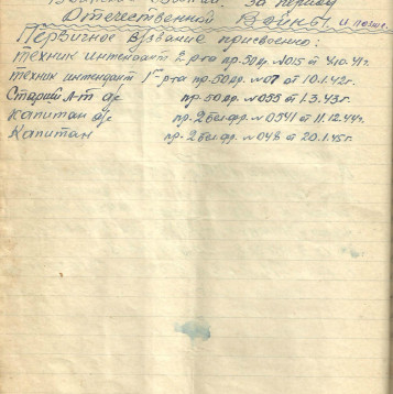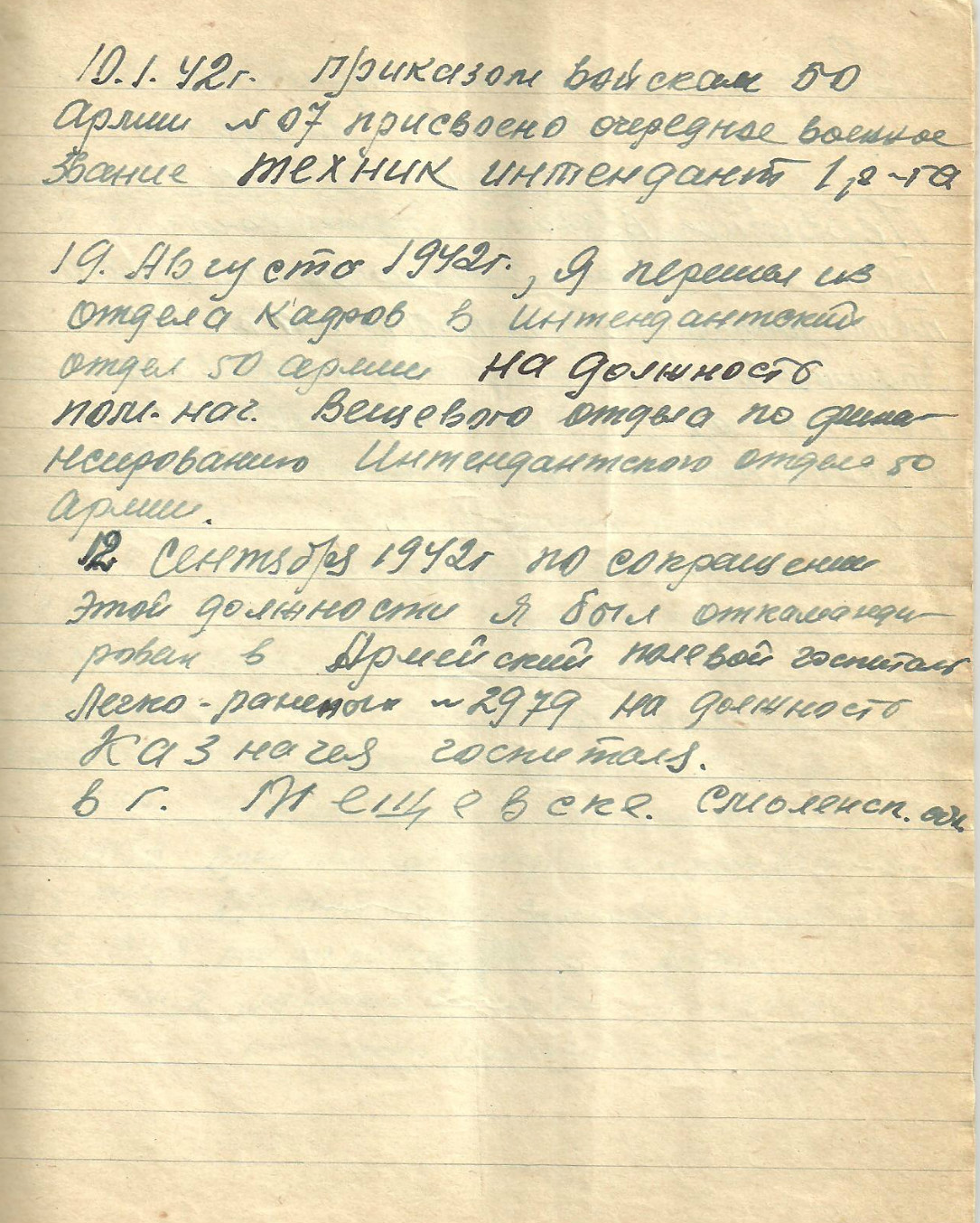 Мой дедушка Артамонов Николай Николаевич родился 07 января 1920 г., в с. Владимировка, Николаевской области УССР. 01 сентября 1940 г. был призван в ряды Советской армии Владимирским РВК. До ВОВ проходил военную службу в 22 легко-танковой бригаде, 4 Армии Белорусского Особого военного округа. Часть эта находилась в г. Брест-Литовск, в 8 км, западнее от города, близ германской границы. Война застала дедушку в первый день, 22 июня 1941г. При неожиданном массированном натиске немецких войск, их бригада не приняла боя – отступила. При отступлении, часть личного состава бригады прибыла в г. Ново-Зыбков, Белорусской ССР. В Ново-Зыбкове формировались новые войсковые части. При подходе немецких войск эти, еще полностью не сформированные части отступали по направлению в г. Могилев. В Могилеве, в начале июля 1941 г. дедушка попал в штаб 25 Мех. корпуса- строевой отдел на должность ст. писаря. Уже в августе 1941г. Этот мех. корпус был расформирован и на базе штаба корпуса и других штабов соединения был сформирован штаб Брянского фронта, где дедушка и проходил службу в отделе кадров фронта. В сентябре 1941г. Был переведен в отдел кадров 50 Армии. За отличное выполнение своих обязанностей мой дедушка был награжден серебряным портсигаром, вот что написано в его характеристике: «…умеет хранить военную тайну. В сложной обстановке в 1941 году под Тулой оказавшись оторванным от Штаба полностью сохранил канцелярию Отдела и доставил ее в штаб…» А в 1944 г. за своевременное выполнение своих функциональных обязанностей мой дедушка был награжден Орденом «Красной звезды». Описание подвига: "Старший лейтенант а/с АРТАМОНОВ в Отделе кадров 50 армии работает с момента организации армии. За 3 года работы в отделе вырос от писаря до помощника начальника 2 отделения.На всем протяжении своей работы проделывает исключительную работу с своевременным выполнением заданий Командования. Быстро и не допуская ошибок отрабатывает наградной материал для доклада Военному Совету армии. В самых трудных условиях ежедневного движения в пути за наступающими частями тов. Артамонов сумел обеспечить вывоз медалей приказов о награждении и немедленно доводит их до сведения командиров частей.Неоднократно Артамонову давались сложные поручения по доставке орденов и медалей частям и соединениям, с этой задачей тов. Артамонов всегда справляется хорошо.08.07.1944 юго-восточнее Минска в районе д. Добренева противник пытаясь выйти из окружения группой около 300 чел. напали на штаб армии, завязался короткий бой по уничтожению этой группы. Тов.Артамонов спокойно и мужественно выполнял все поручения начальника, ему было поручено вывезти автомашину с документами в безопасное место. Презирая опасность для жизни под ружейно-автоматным огнем противника тов. Артамонов погрузил ордена и имущество на машину и вывел машину в безопасное место".