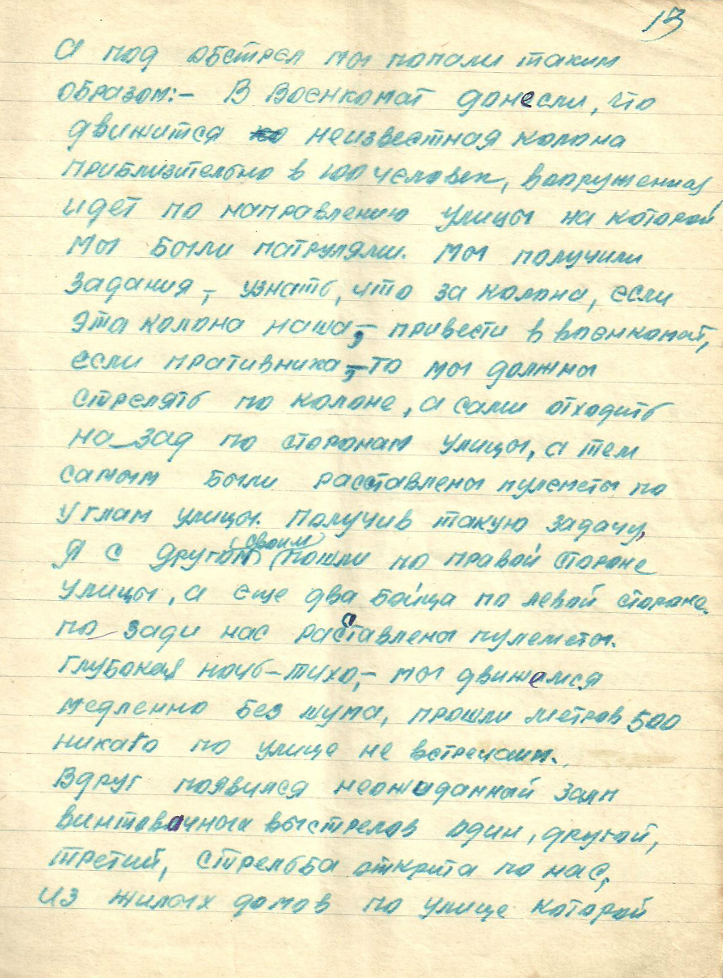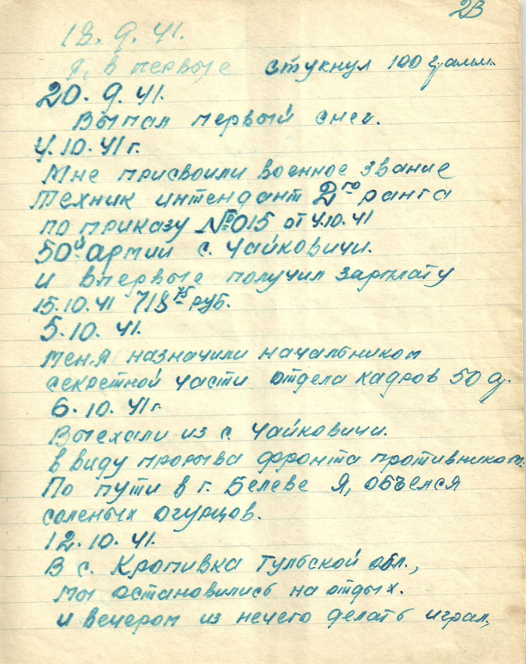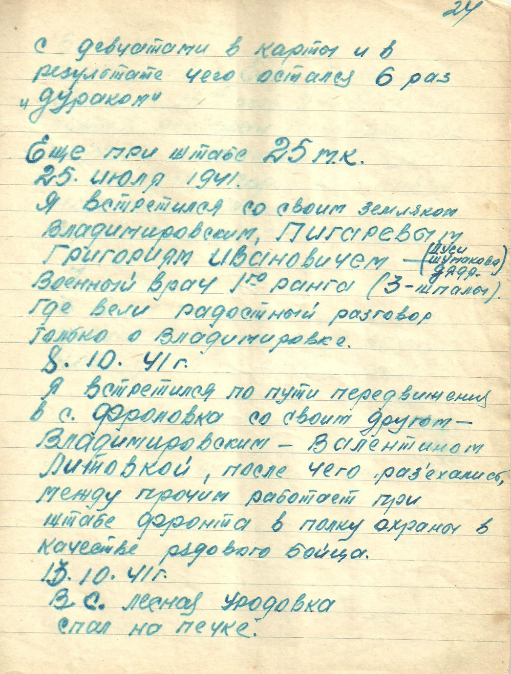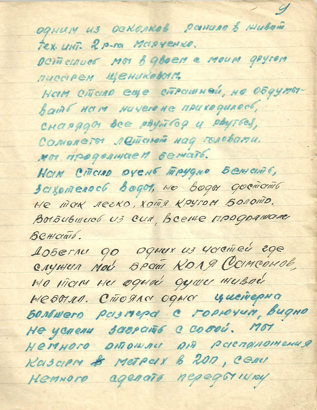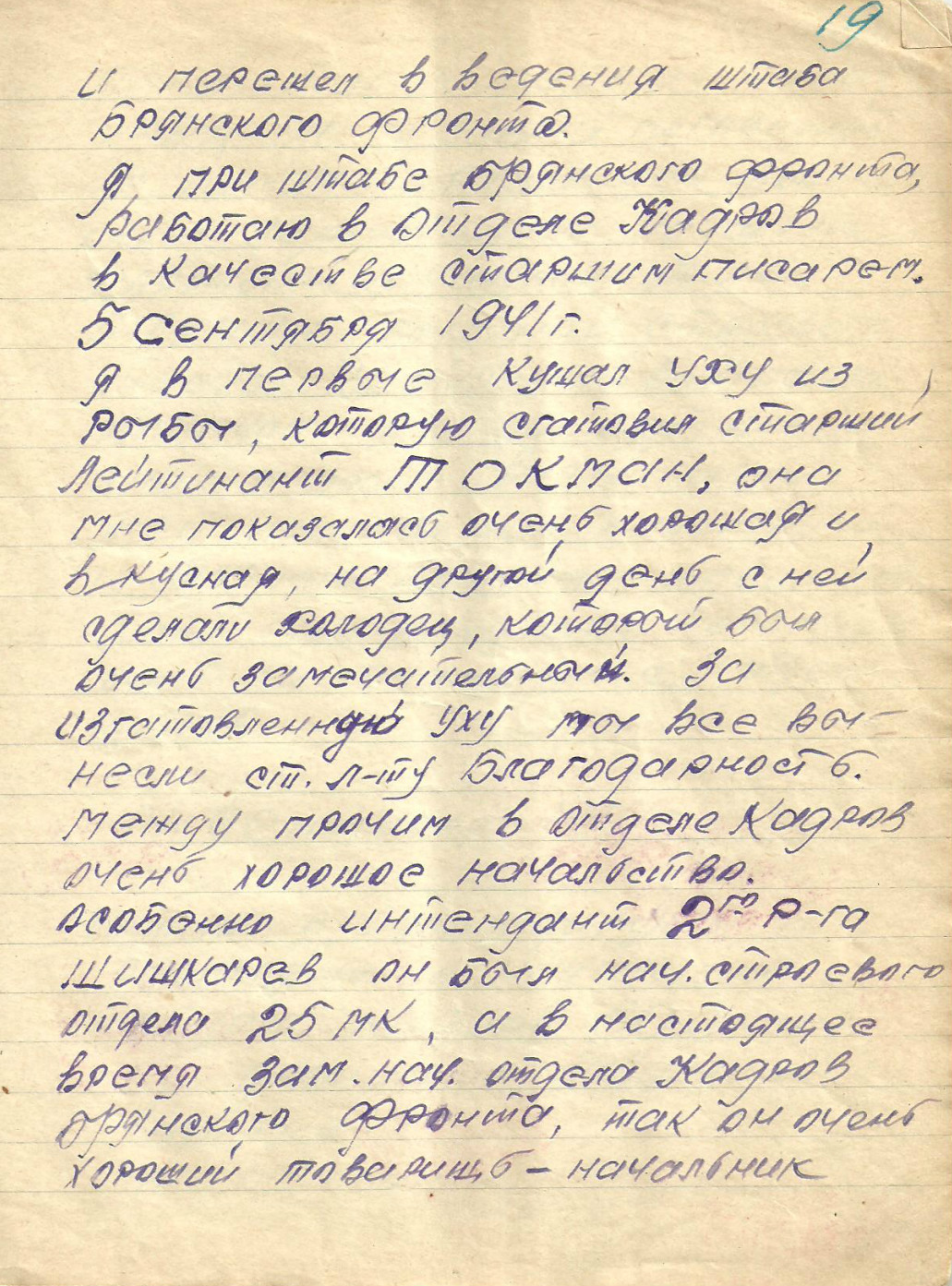 Мой дедушка Артамонов Николай Николаевич родился 07 января 1920 г., в с. Владимировка, Николаевской области УССР. 01 сентября 1940 г. был призван в ряды Советской армии Владимирским РВК. До ВОВ проходил военную службу в 22 легко-танковой бригаде, 4 Армии Белорусского Особого военного округа. Часть эта находилась в г. Брест-Литовск, в 8 км, западнее от города, близ германской границы. Война застала дедушку в первый день, 22 июня 1941г. При неожиданном массированном натиске немецких войск, их бригада не приняла боя – отступила. При отступлении, часть личного состава бригады прибыла в г. Ново-Зыбков, Белорусской ССР. В Ново-Зыбкове формировались новые войсковые части. При подходе немецких войск эти, еще полностью не сформированные части отступали по направлению в г. Могилев. В Могилеве, в начале июля 1941 г. дедушка попал в штаб 25 Мех. корпуса- строевой отдел на должность ст. писаря. Уже в августе 1941г. Этот мех. корпус был расформирован и на базе штаба корпуса и других штабов соединения был сформирован штаб Брянского фронта, где дедушка и проходил службу в отделе кадров фронта. В сентябре 1941г. Был переведен в отдел кадров 50 Армии. За отличное выполнение своих обязанностей мой дедушка был награжден серебряным портсигаром, вот что написано в его характеристике: «…умеет хранить военную тайну. В сложной обстановке в 1941 году под Тулой оказавшись оторванным от Штаба полностью сохранил канцелярию Отдела и доставил ее в штаб…» А в 1944 г. за своевременное выполнение своих функциональных обязанностей мой дедушка был награжден Орденом «Красной звезды». Описание подвига: "Старший лейтенант а/с АРТАМОНОВ в Отделе кадров 50 армии работает с момента организации армии. За 3 года работы в отделе вырос от писаря до помощника начальника 2 отделения.На всем протяжении своей работы проделывает исключительную работу с своевременным выполнением заданий Командования. Быстро и не допуская ошибок отрабатывает наградной материал для доклада Военному Совету армии. В самых трудных условиях ежедневного движения в пути за наступающими частями тов. Артамонов сумел обеспечить вывоз медалей приказов о награждении и немедленно доводит их до сведения командиров частей.Неоднократно Артамонову давались сложные поручения по доставке орденов и медалей частям и соединениям, с этой задачей тов. Артамонов всегда справляется хорошо.08.07.1944 юго-восточнее Минска в районе д. Добренева противник пытаясь выйти из окружения группой около 300 чел. напали на штаб армии, завязался короткий бой по уничтожению этой группы. Тов.Артамонов спокойно и мужественно выполнял все поручения начальника, ему было поручено вывезти автомашину с документами в безопасное место. Презирая опасность для жизни под ружейно-автоматным огнем противника тов. Артамонов погрузил ордена и имущество на машину и вывел машину в безопасное место".
