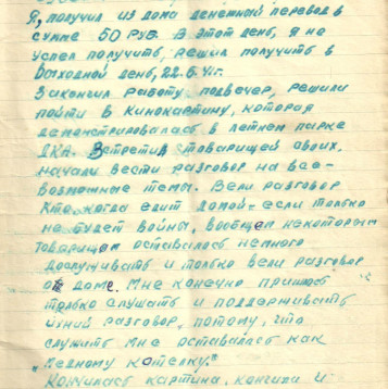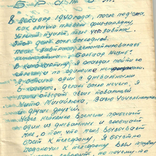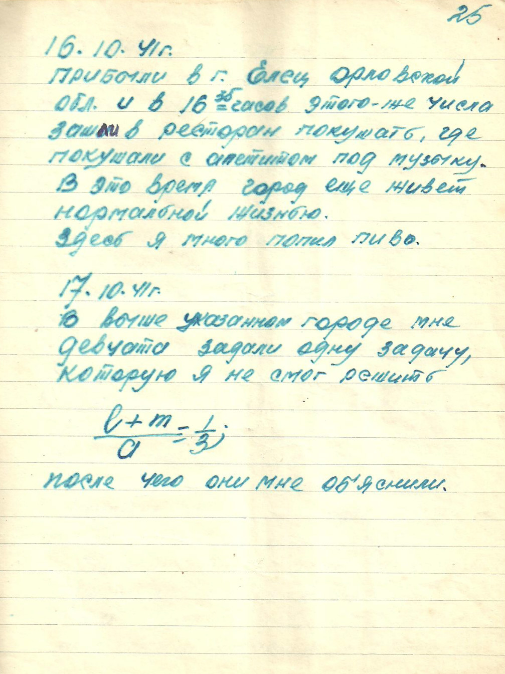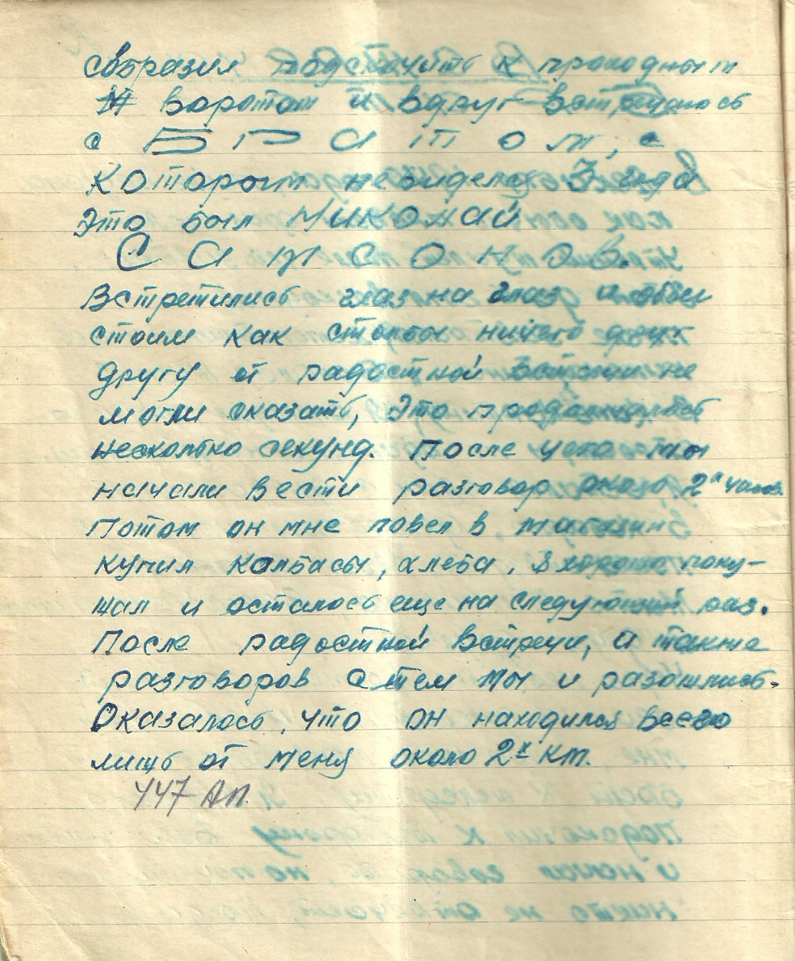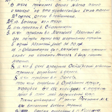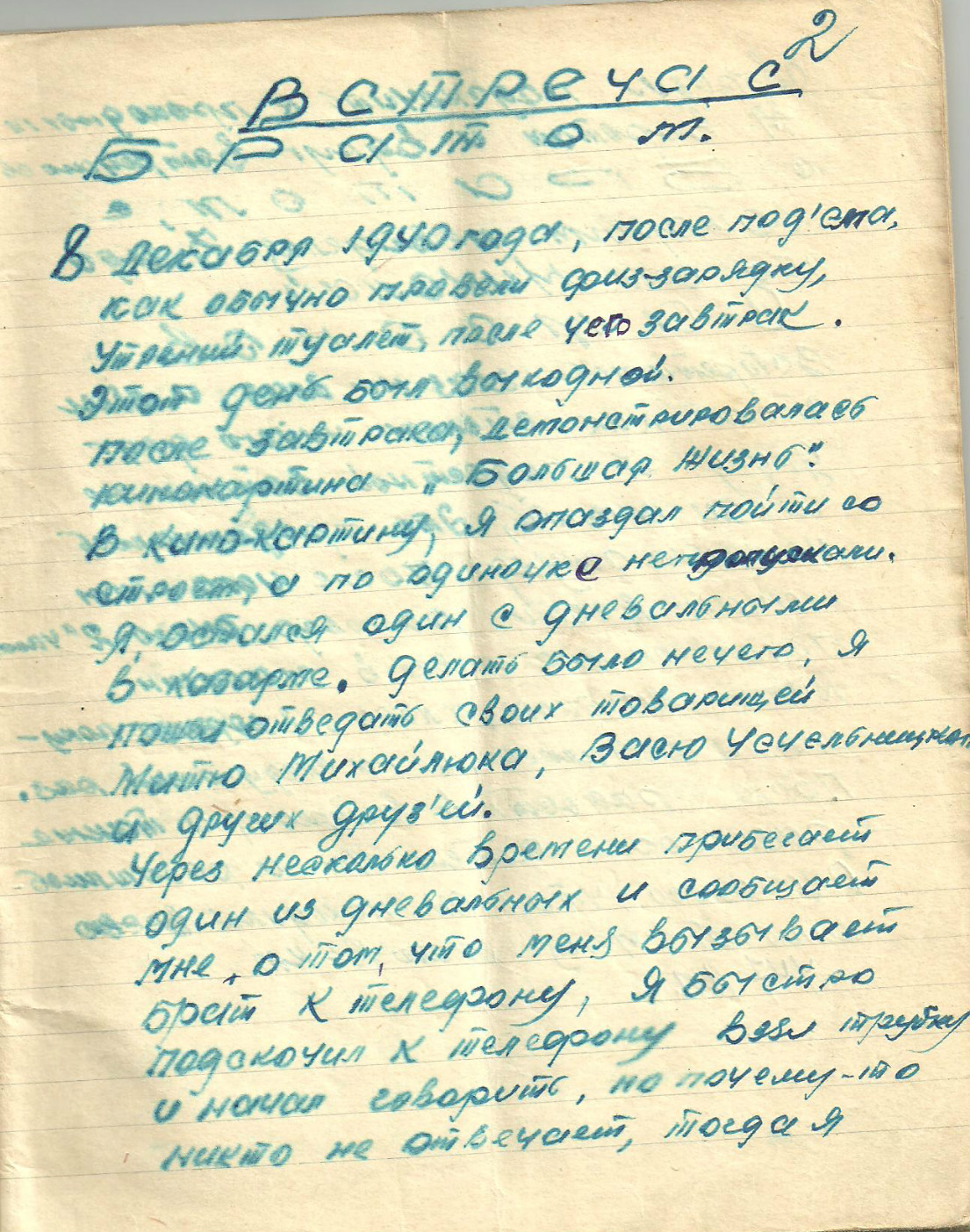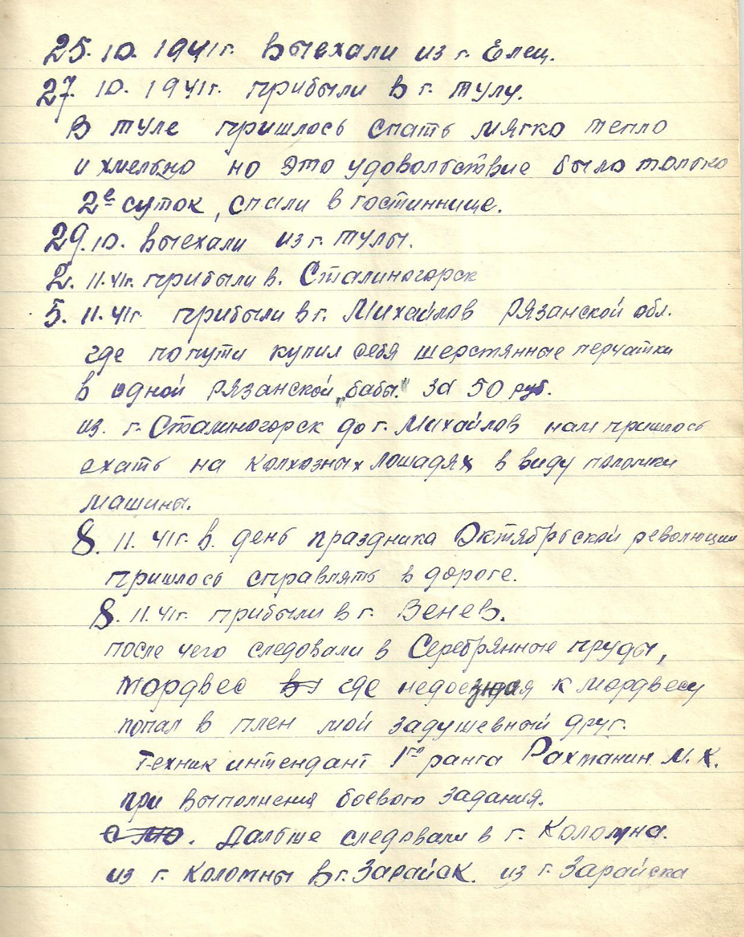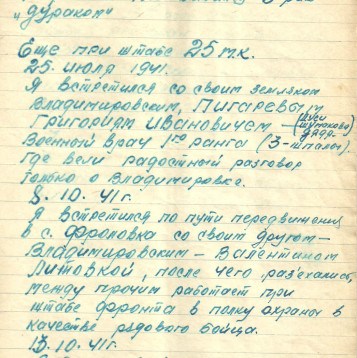 Мой дедушка Артамонов Николай Николаевич родился 07 января 1920 г., в с. Владимировка, Николаевской области УССР. 01 сентября 1940 г. был призван в ряды Советской армии Владимирским РВК. До ВОВ проходил военную службу в 22 легко-танковой бригаде, 4 Армии Белорусского Особого военного округа. Часть эта находилась в г. Брест-Литовск, в 8 км, западнее от города, близ германской границы. Война застала дедушку в первый день, 22 июня 1941г. При неожиданном массированном натиске немецких войск, их бригада не приняла боя – отступила. При отступлении, часть личного состава бригады прибыла в г. Ново-Зыбков, Белорусской ССР. В Ново-Зыбкове формировались новые войсковые части. При подходе немецких войск эти, еще полностью не сформированные части отступали по направлению в г. Могилев. В Могилеве, в начале июля 1941 г. дедушка попал в штаб 25 Мех. корпуса- строевой отдел на должность ст. писаря. Уже в августе 1941г. Этот мех. корпус был расформирован и на базе штаба корпуса и других штабов соединения был сформирован штаб Брянского фронта, где дедушка и проходил службу в отделе кадров фронта. В сентябре 1941г. Был переведен в отдел кадров 50 Армии. За отличное выполнение своих обязанностей мой дедушка был награжден серебряным портсигаром, вот что написано в его характеристике: «…умеет хранить военную тайну. В сложной обстановке в 1941 году под Тулой оказавшись оторванным от Штаба полностью сохранил канцелярию Отдела и доставил ее в штаб…» А в 1944 г. за своевременное выполнение своих функциональных обязанностей мой дедушка был награжден Орденом «Красной звезды». Описание подвига: "Старший лейтенант а/с АРТАМОНОВ в Отделе кадров 50 армии работает с момента организации армии. За 3 года работы в отделе вырос от писаря до помощника начальника 2 отделения.На всем протяжении своей работы проделывает исключительную работу с своевременным выполнением заданий Командования. Быстро и не допуская ошибок отрабатывает наградной материал для доклада Военному Совету армии. В самых трудных условиях ежедневного движения в пути за наступающими частями тов. Артамонов сумел обеспечить вывоз медалей приказов о награждении и немедленно доводит их до сведения командиров частей.Неоднократно Артамонову давались сложные поручения по доставке орденов и медалей частям и соединениям, с этой задачей тов. Артамонов всегда справляется хорошо.08.07.1944 юго-восточнее Минска в районе д. Добренева противник пытаясь выйти из окружения группой около 300 чел. напали на штаб армии, завязался короткий бой по уничтожению этой группы. Тов.Артамонов спокойно и мужественно выполнял все поручения начальника, ему было поручено вывезти автомашину с документами в безопасное место. Презирая опасность для жизни под ружейно-автоматным огнем противника тов. Артамонов погрузил ордена и имущество на машину и вывел машину в безопасное место".