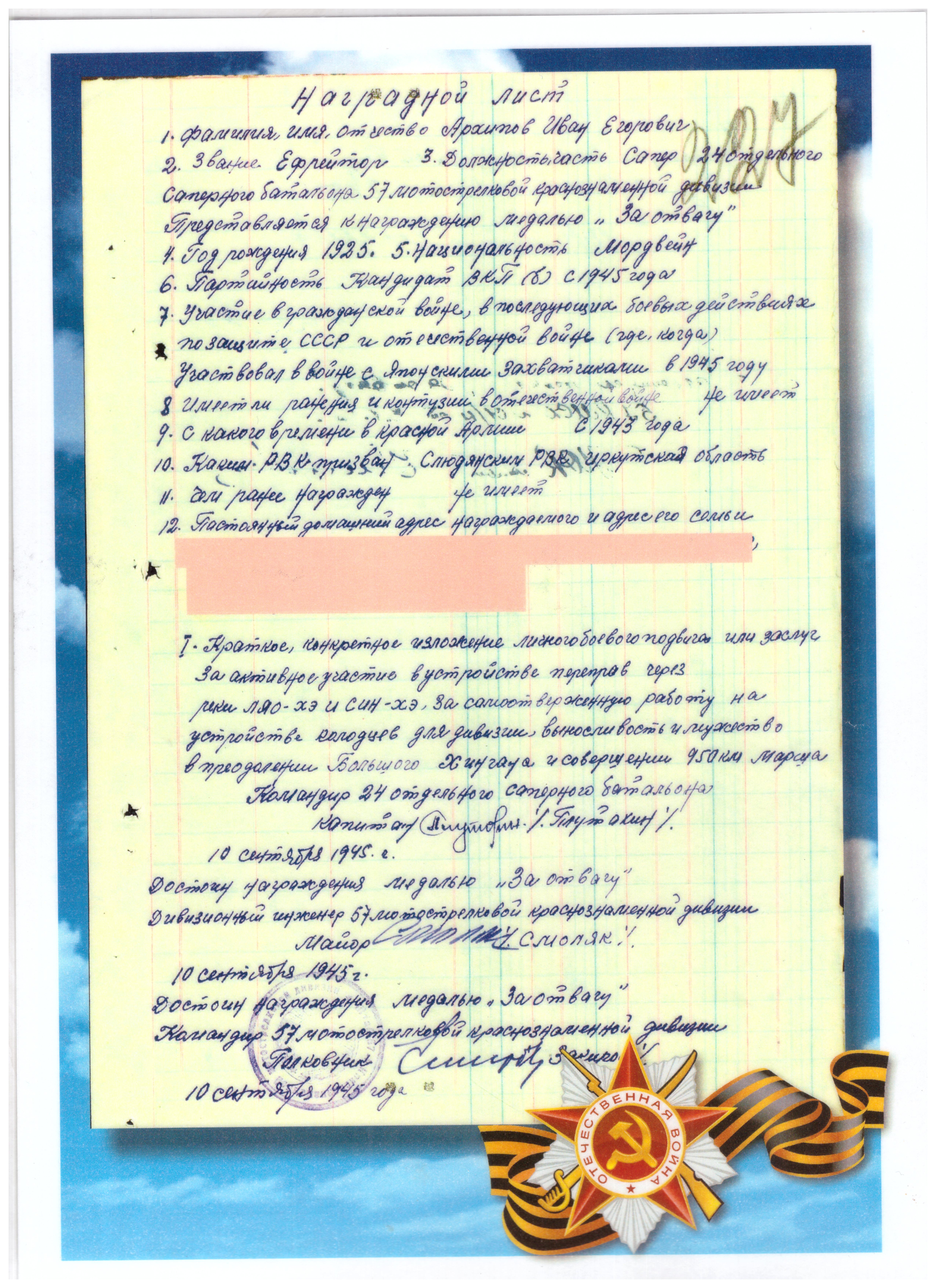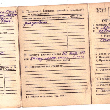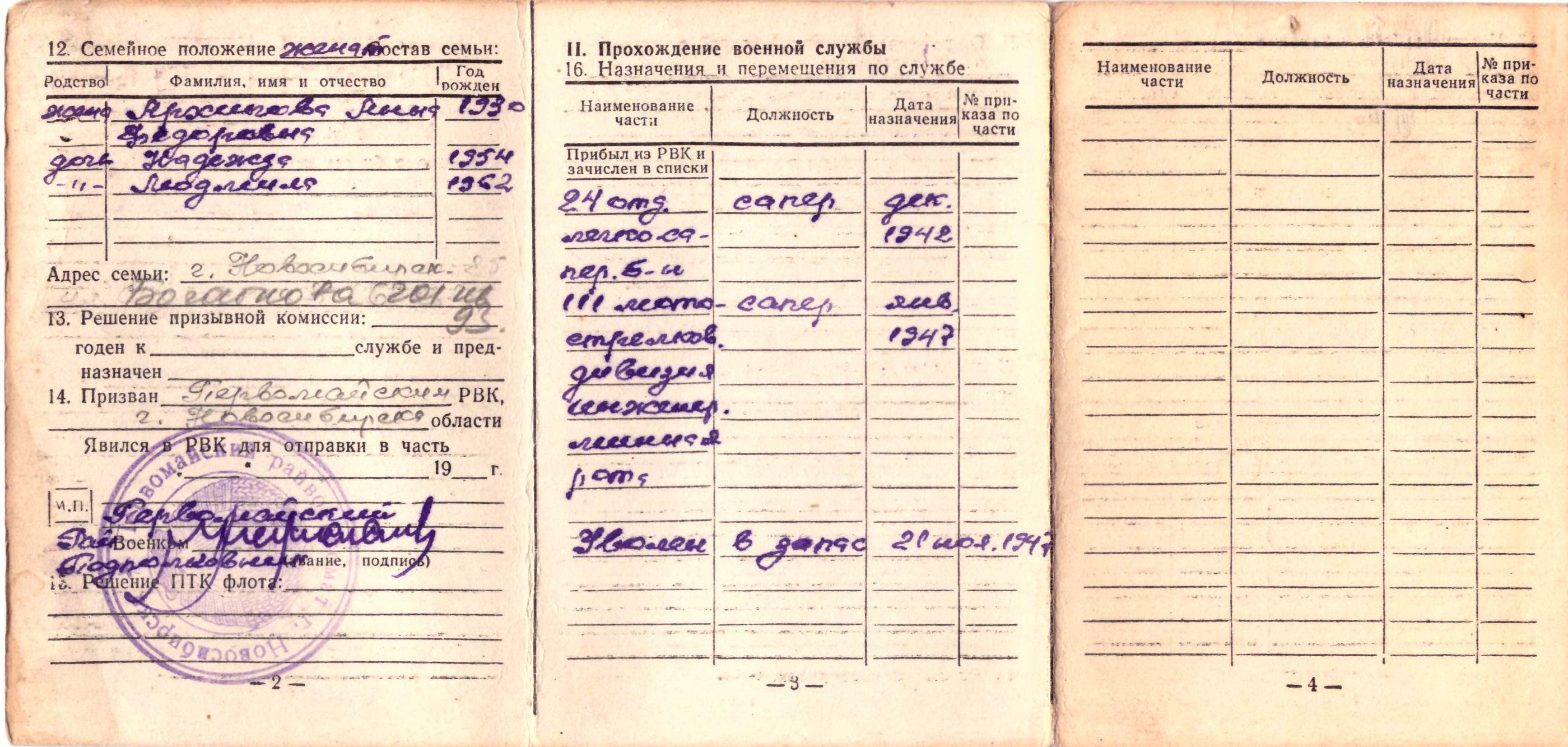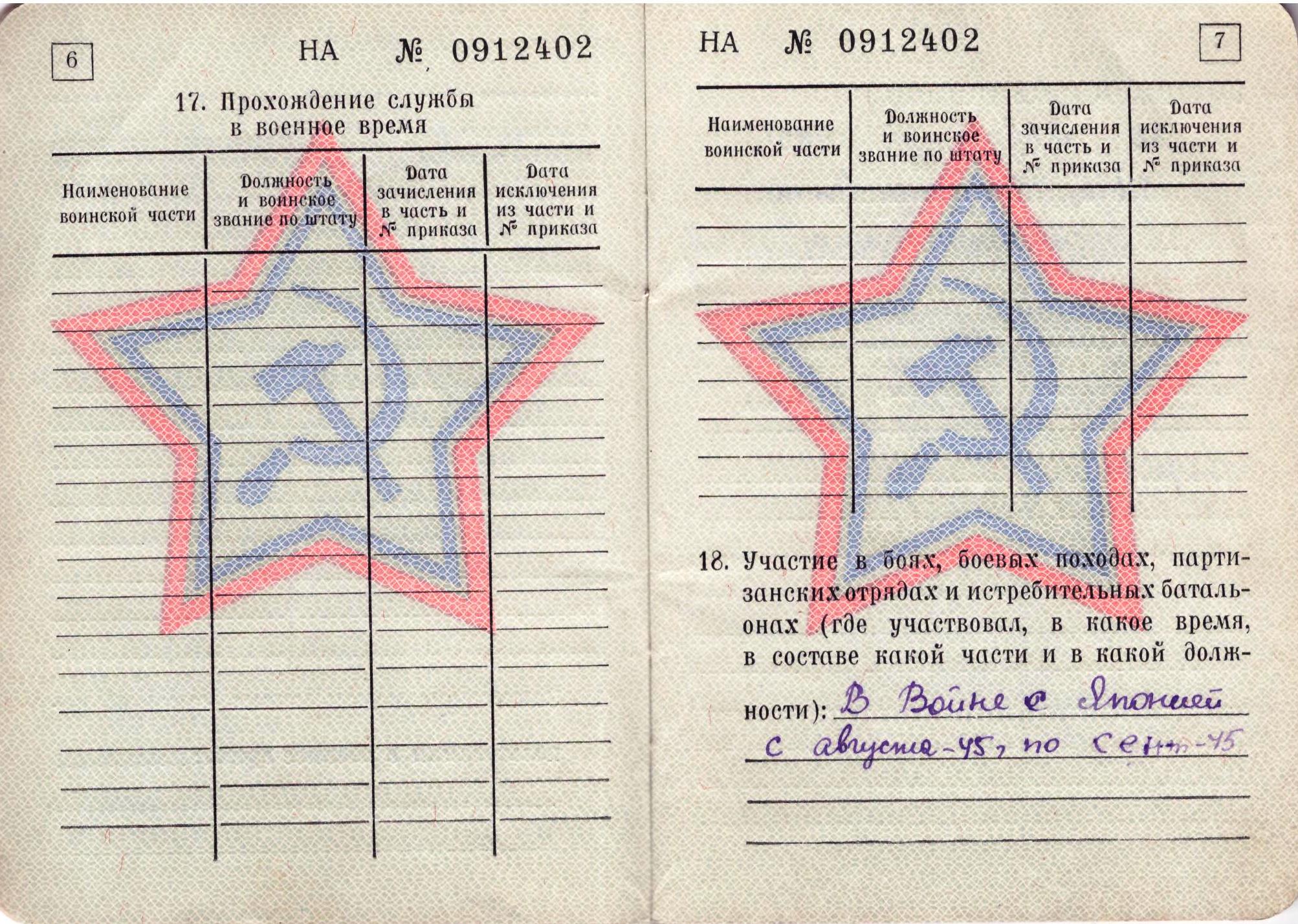 Воевал в составе 24 отд.легко-саперного батальона сапером (декабрь 1942-январь 1947 гг.). Участвовал в войне с Японией с августа 1945 по сентябрь 1945 гг., III Мотострелковой дивизии инженерно-линейной роты сапером (январь 1947-ноябрь 1947 гг).