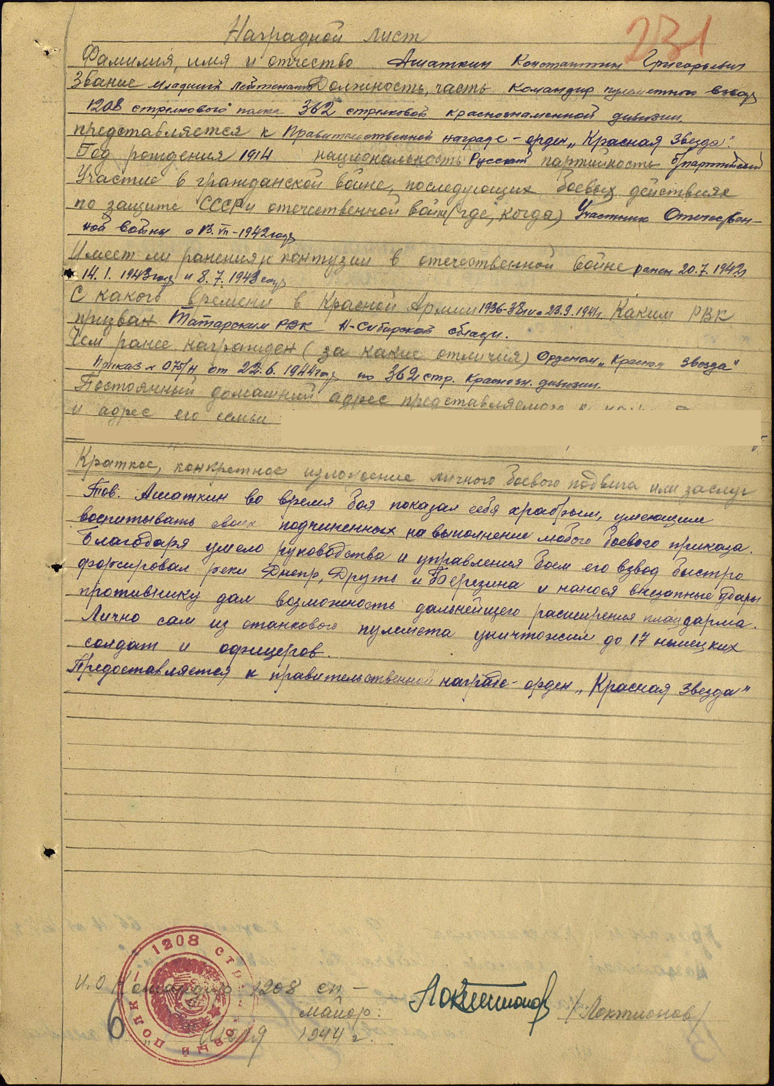 АШАТКИН КОНСТАНТИН ГРИГОРЬЕВИЧ (1914-1941) Участник