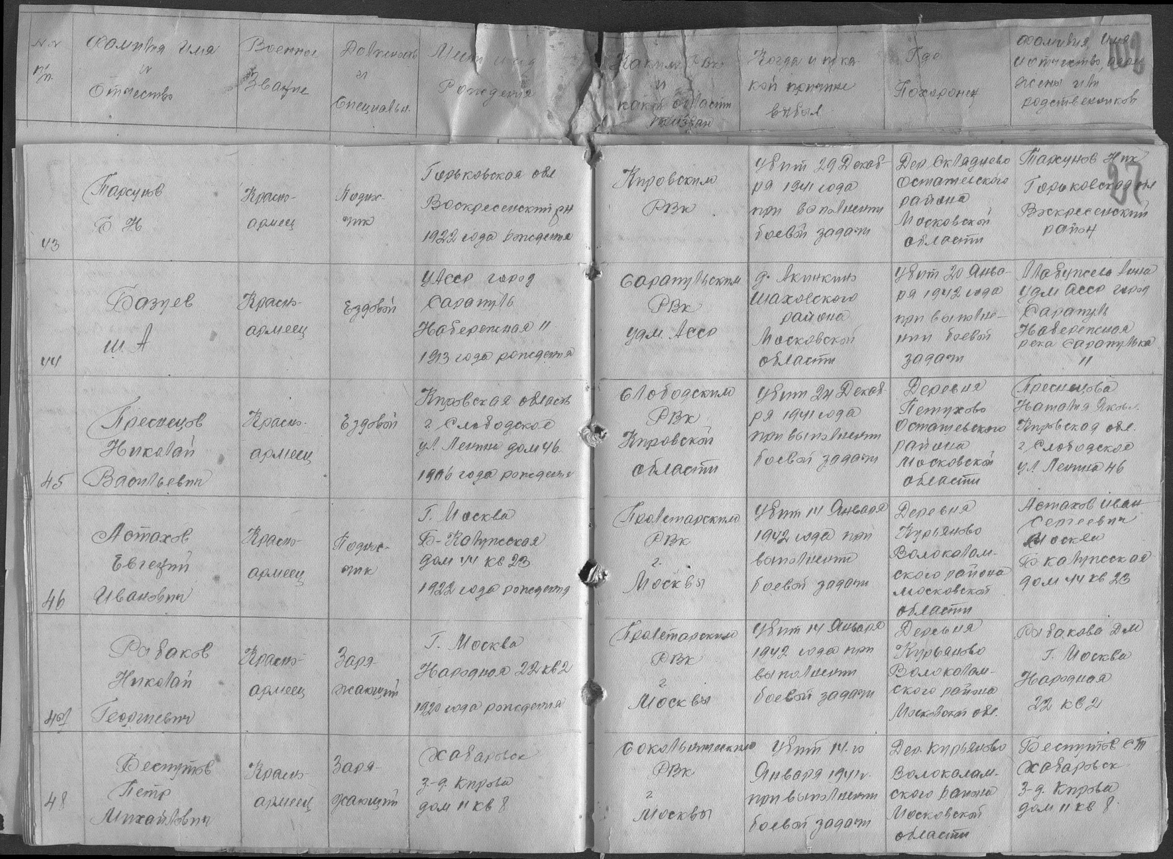 Место рождения: г. Москва, Б.-Калужская, 44-23
