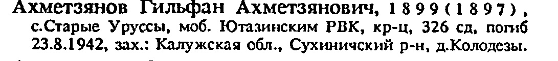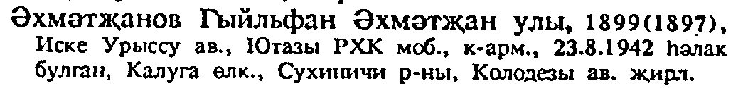 Кроме фактов призыва из Ютазинского РВК и даты, места смерти, известных из Книги Памяти Татарстана о боевом пути Гильфана ничего не известно.