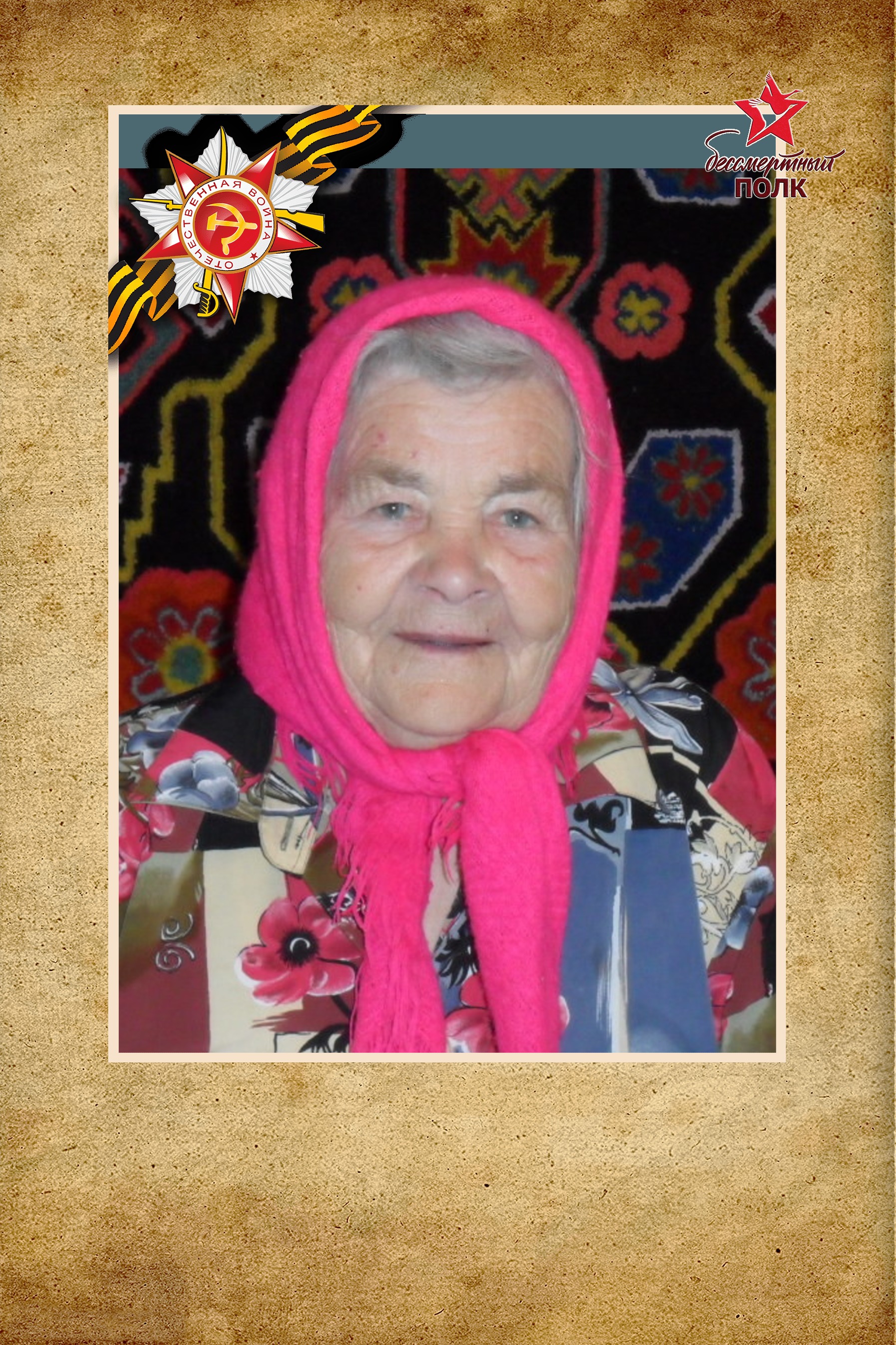Фамилии, имена, отчества родителей, даты их жизни и род занятий в период войны: Королев Илья Иванович, 02.08.1892- 19.08.1943, был крестьянином, очень строгим. Сам работал от зари до зари, и других заставлял. Воевал во время Первой Мировой войны на стороне красных, был ранен. У него было родилось 9 детей. Пятеро умерло в младенчестве. Во время ВОв был председателем колхоза, ему дали бронь, не забрали в армию. Вскоре заболел туберкулезом и умер, похоронен в селе Отрадное. Мать Королева Анна Спиридоновна,15.07.1892-04.01.1978, у Анны был дар, она умела лечить людей. Многих она вылечила молитвами и заговорами. Занималась воспитанием четверых детей. Похоронена в г. Киселевске. Полученное образование (оконченные учебные заведения): Закончила перед началом Великой Отечественной войны 4 класса начальной школы в селе Чудотвориха Кытмановского района Алтайского края. Этапы жизненного пути после войны (краткое перечисление мест работы и периодов работы на предприятиях, организациях, учреждениях): Трудовой стаж насчитывает 42 года. Начала работать с 13 лет. В 1944 году она отучилась на агротехника. Работала в колхозе имени Дзержинского бухгалтером, няней в дет. саду, истопником в с/совете, учетчиком. Сдавала кровь, была почетным донором СССР. Награды и звания (государственные, ведомственные, областные): За свою работу награждена Почетными грамотами и званием «Ветеран труда». Награждена юбилейными медалями Победы.