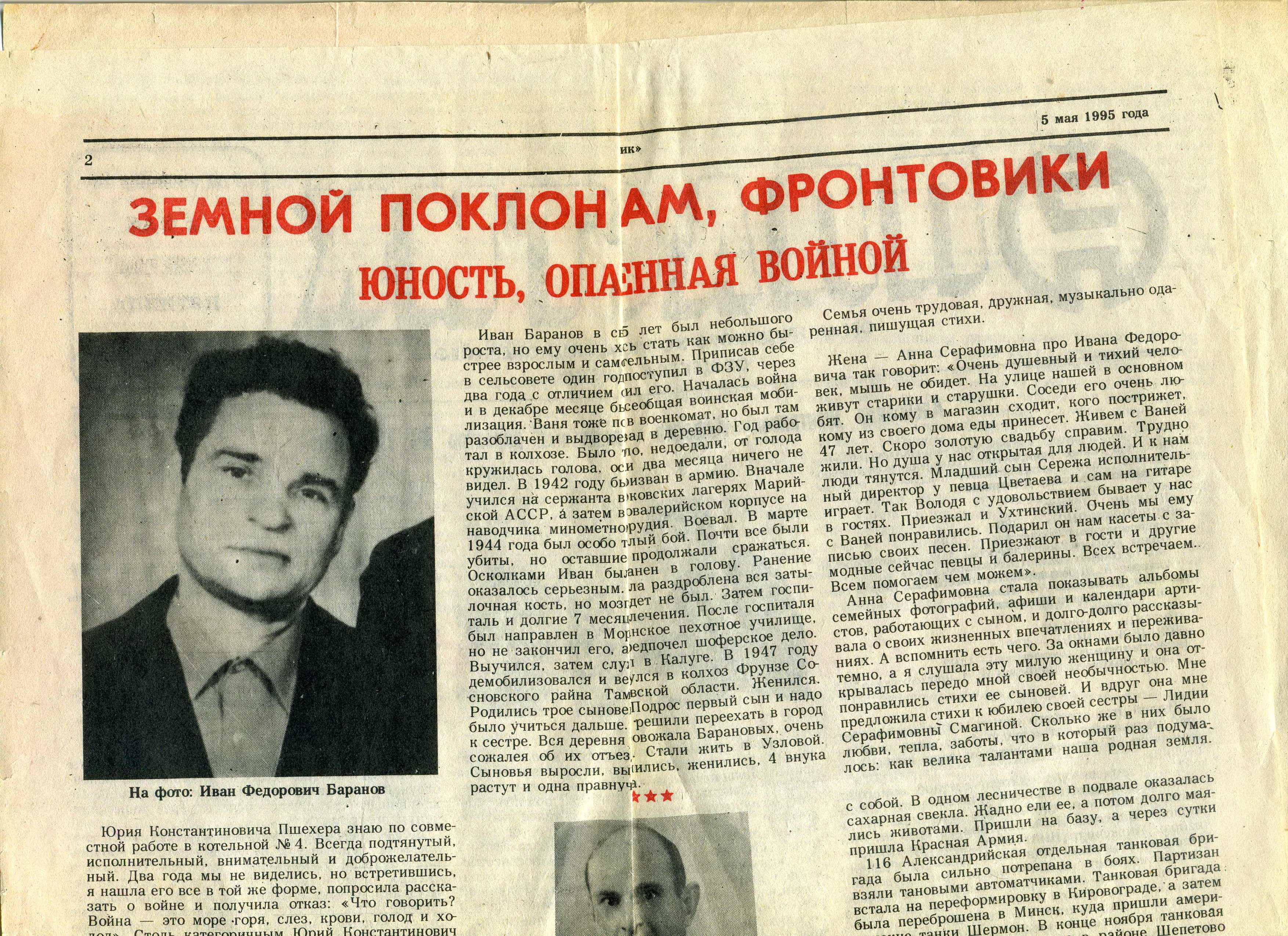 человек, «мышь не обидит», по словам жены (моей бабушки) Барановой Анны Серафимовны, прожившей с ним бок о бок