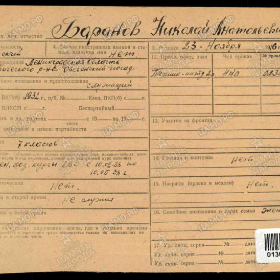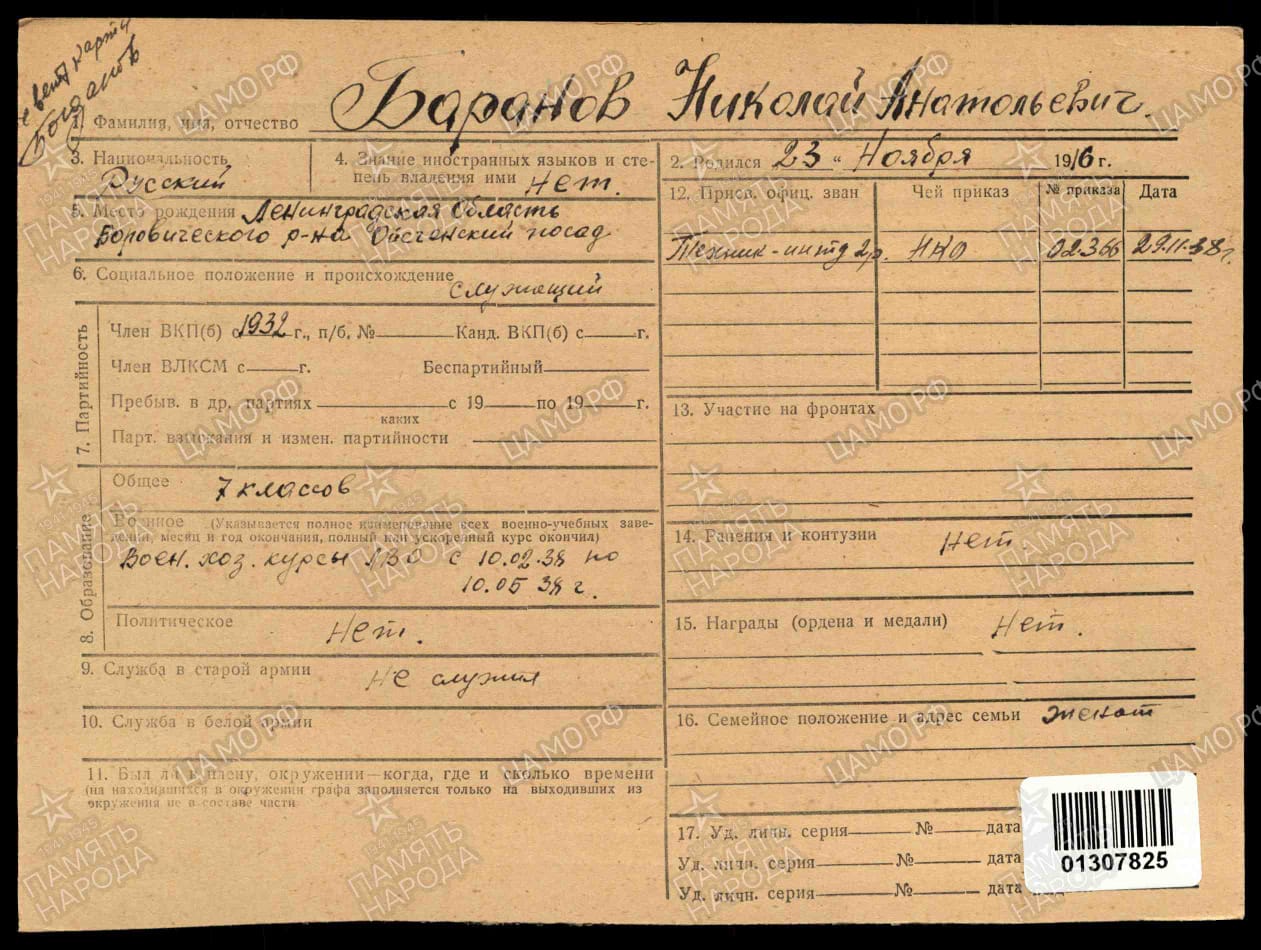 • Начальник обозно-вещевого снабжения 459 стрелкового полка – с 15.08.1940 г.