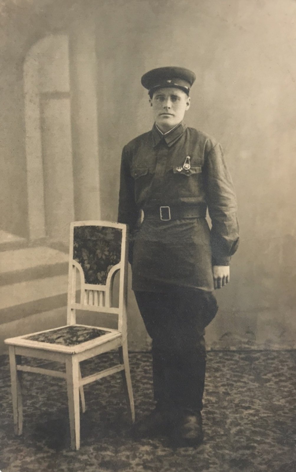 27 марта 1940 был призван в ряды красной армии Тугулымским РВК, Свердловской области. Направлен в 374 стрелковый полк, 128 стрелковую дивизию, миномётчиком в звании рядовой красноармеец.