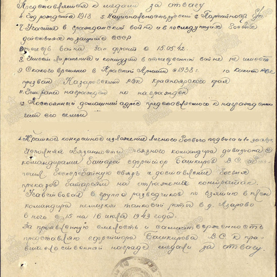 Я , дочь Василия Семеновича Башкирова - уроженца с. Ельник, Красноярского края, родилась в 1949г. Отца помню по фрагментам детской памяти, но очень хорошо по воспоминаниям бабушки Башкировой ( Чекменевой ) Феклы Дмитриены. Папа родился в семье Башкирова Семена Ивановича , где было 5 дочек и один сын , вторым после старшей сестры Раисы Семеновны.