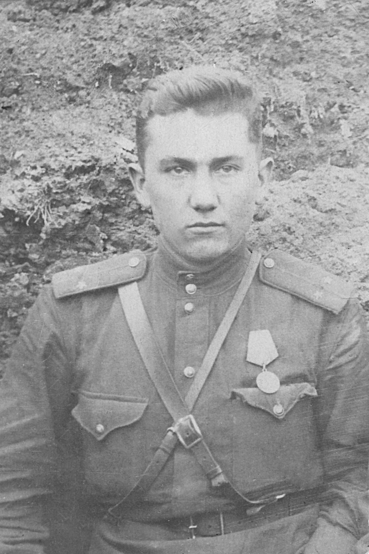 Окончил школу в 1942г. 6 августа 42г. был призван ряды Советской Армии. Направлен в Новоград-Волынское пехотное училище г.Ярославль которое окончил 24 апреля 43г. с присвоением звания младший лейтенант и направлен на Ленинградский фронт в составе 1250 стр.полка 376 стр.дивизии - адьютантом старшим батальона.