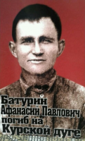 Боевой путь ветерана Батурин Афанасий Павлович - красноармеец. 1900-1943. Рядовой Стрелок 894 стрелкового полка 211стрелковой дивизии (2формирования) в составе 70 армии. Погиб в 1943 на Курской Дуге.