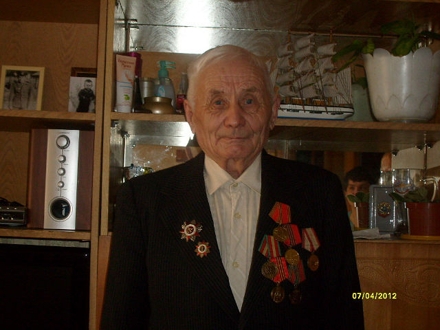 В красноармейской книжке записано: рядовой наводчик РПД 226 часть Алтайская танковая стрелковая пехота. Участвовал в войне с Японией в составе 612 стрелкового полка с августа 1945 года по октябрь 1945 года, был ранен в ногу и уволен в запас.