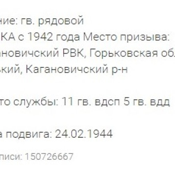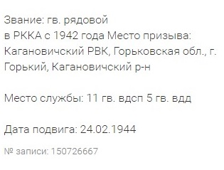 Место рождения: Горьковская (Нижегородская) обл., Кстовский (Работинский) р-н, деревня Семенищи