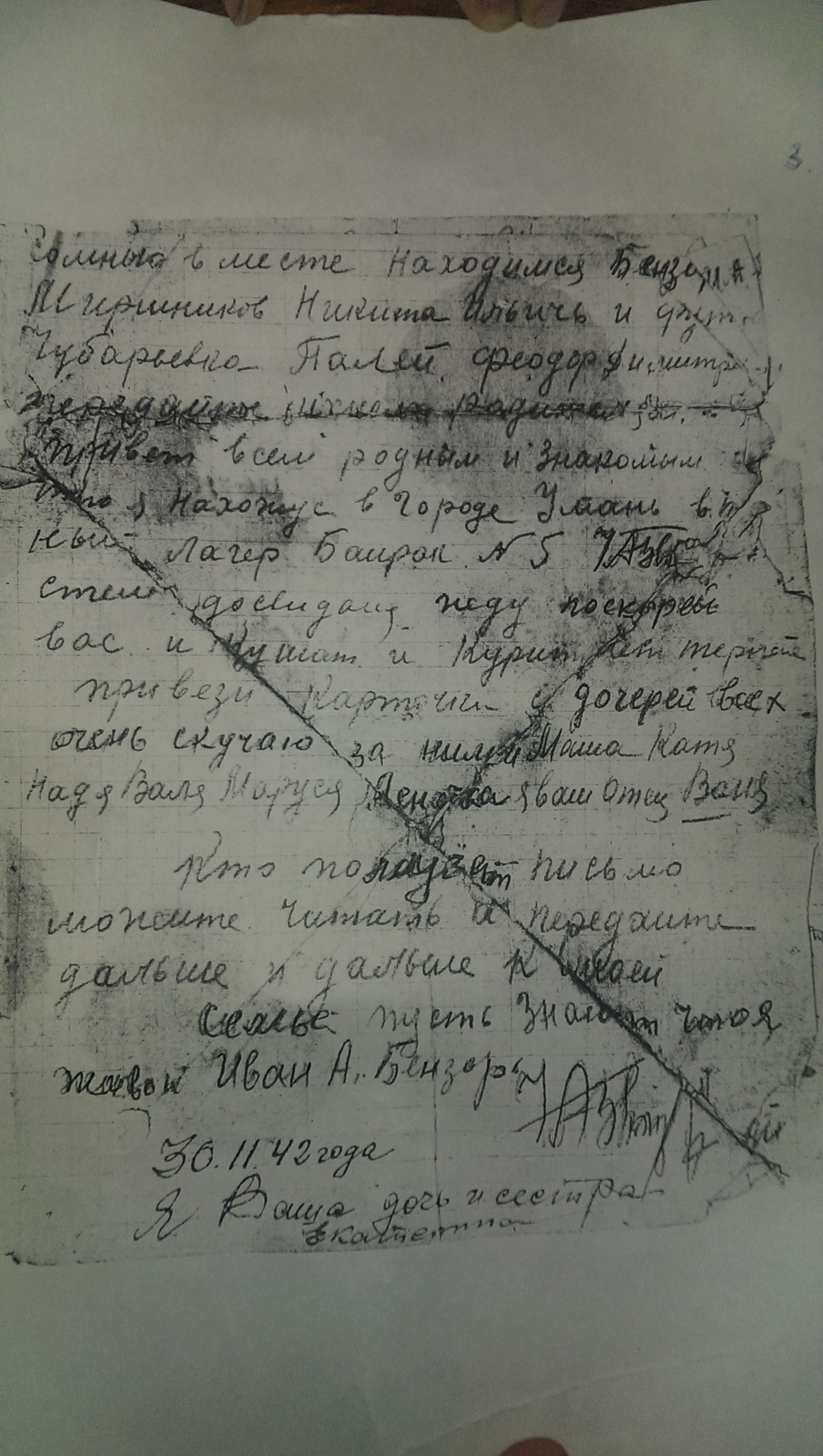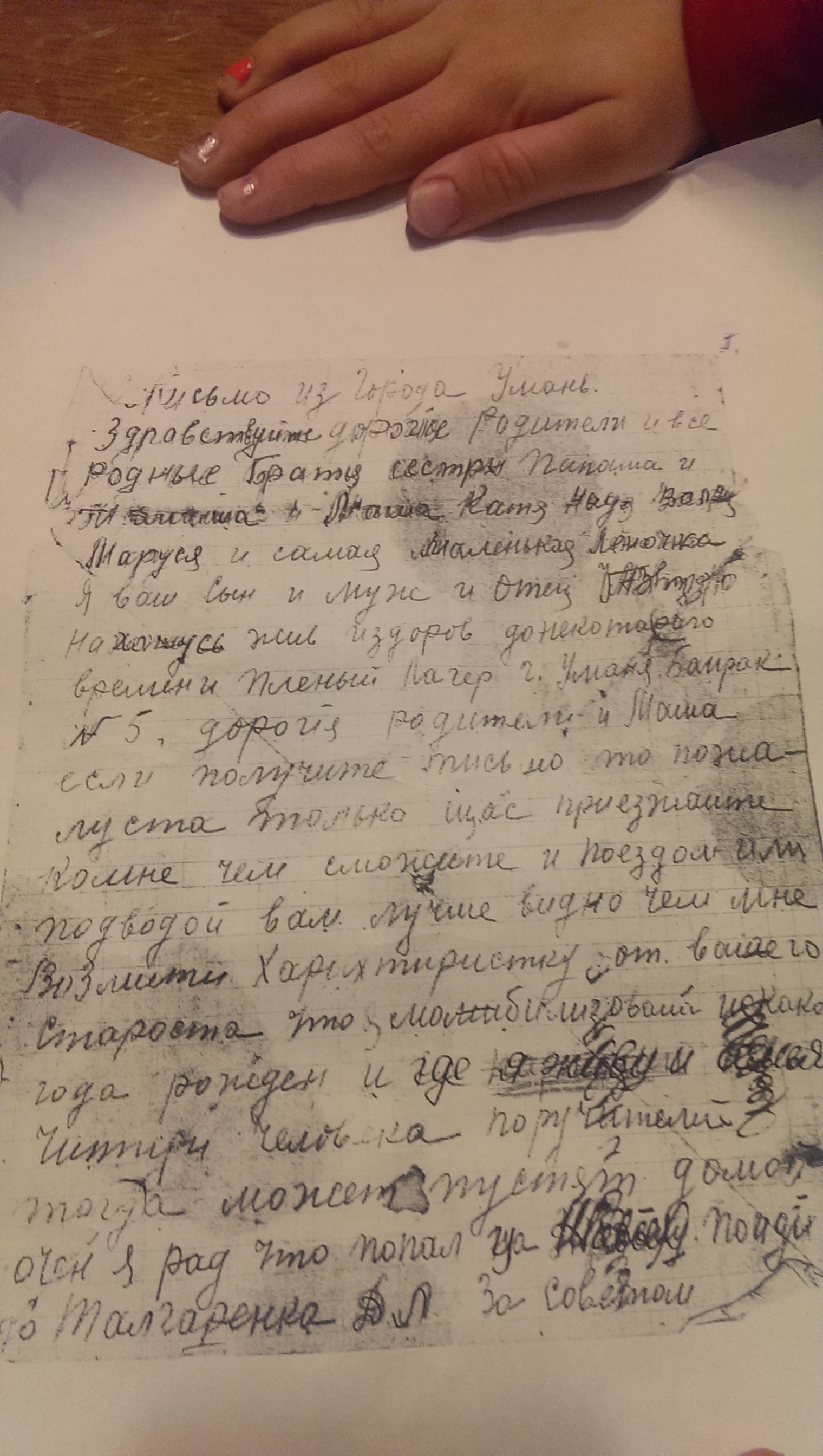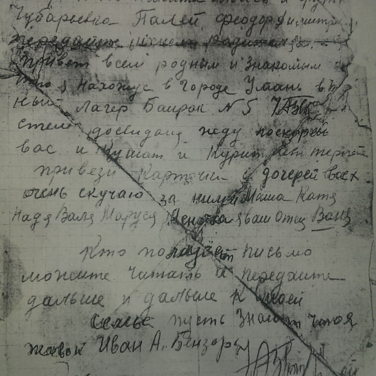 Катя, Надя, Валя, Маруся, Леночка я Ваш отец Ваня. Кто получит письмо можете