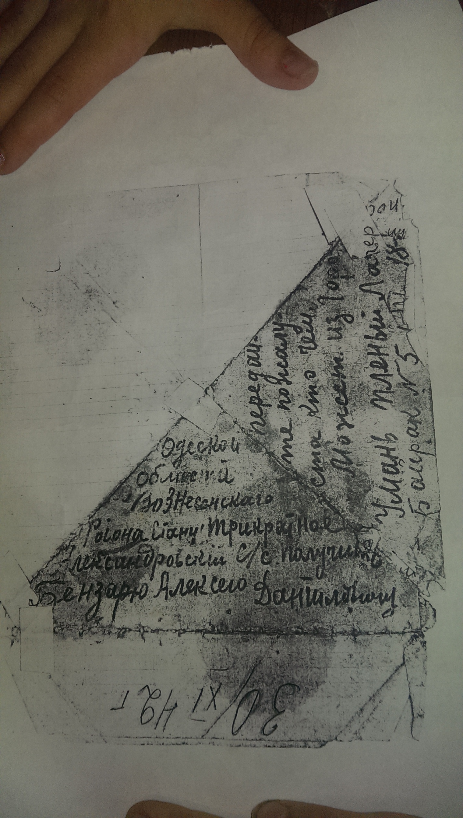 страшное письмо из пленного лагеря г. Умань, барака №5. (орфография сохранена)