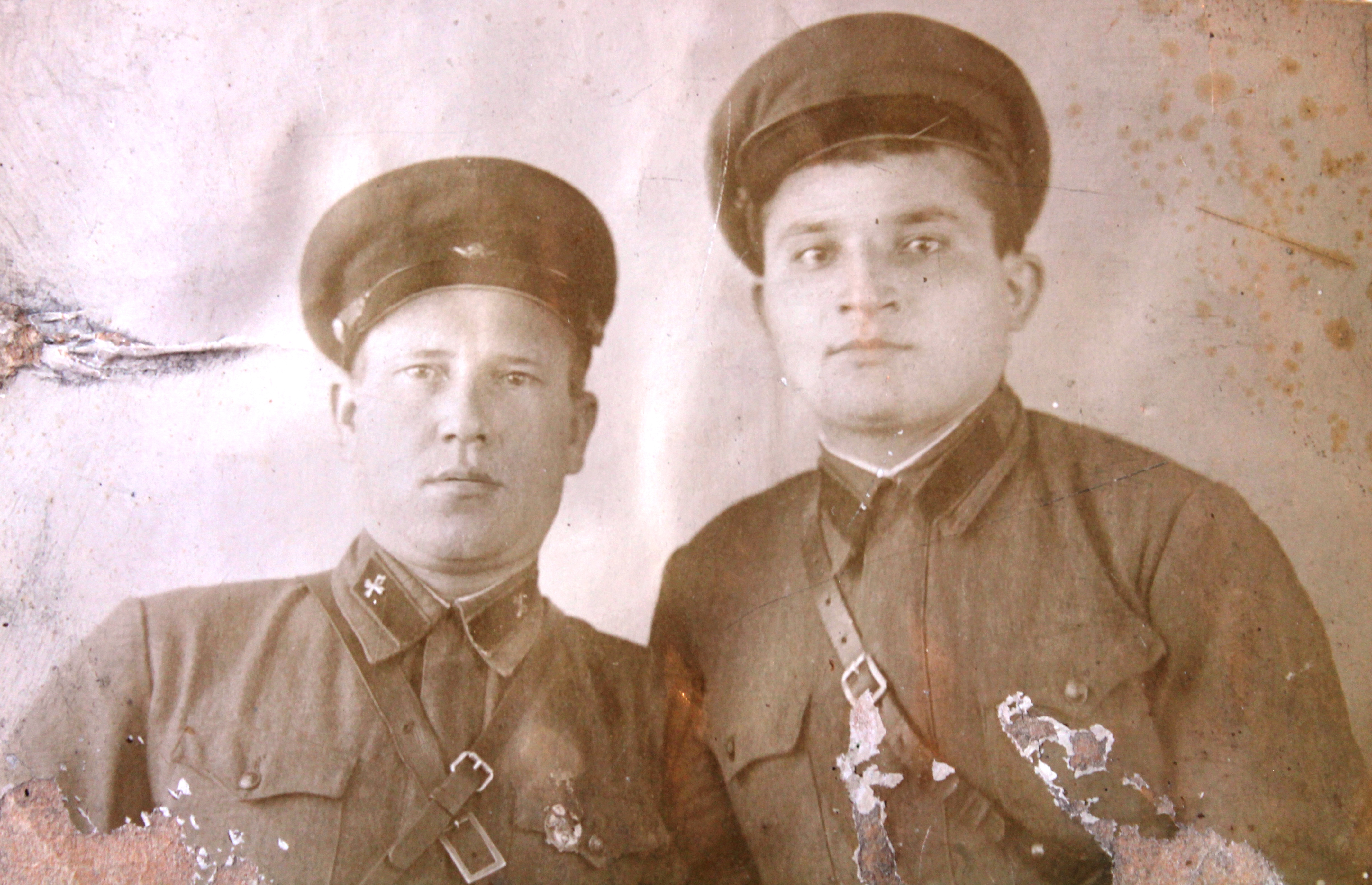 К сожаления, очень мало известно о моём дедушке и пока я не нашёл о нём и его боевых подвигах сведений, кроме того, что в 1939г. он был призван в ряды Красной Армии на Финскую войну (сразу после женитьбы на моей бабушке Екатерине Степановне, в браке с которой в 9.04.1940г. родился мой отец Бескинский Анатолий Васильевич, ныне здравствующий и проживающий в п. Аютинский РО), и больше не вернувшийся с фронта, т.к. началась ВОВ и он продолжил защищать Родину в артиллерийских войсках и погиб в 1943г. под Ленинградом (откуда и пришла похоронка). По не проверенным данным он был захоронен на Пискарёвском кладбище. Эта фотография с сослуживцем - единственно сохранившаяся память о нём (с неё в последствии был сделан цветной портрет).