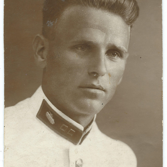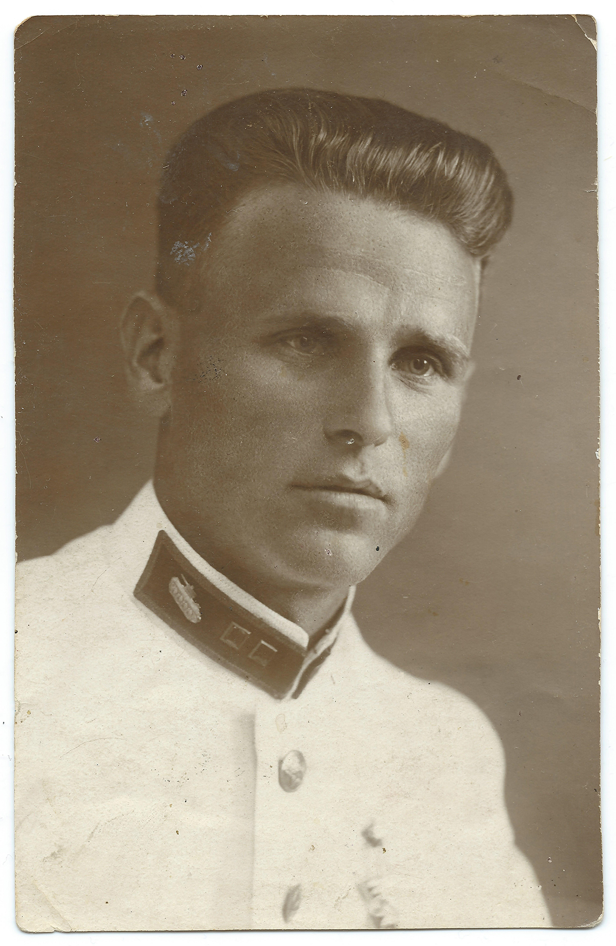 окончил в 1938 г в должности лейтенанта и командира взвода.Ушел на фронт в качестве командира взвода, а затем стал командиром роты 1