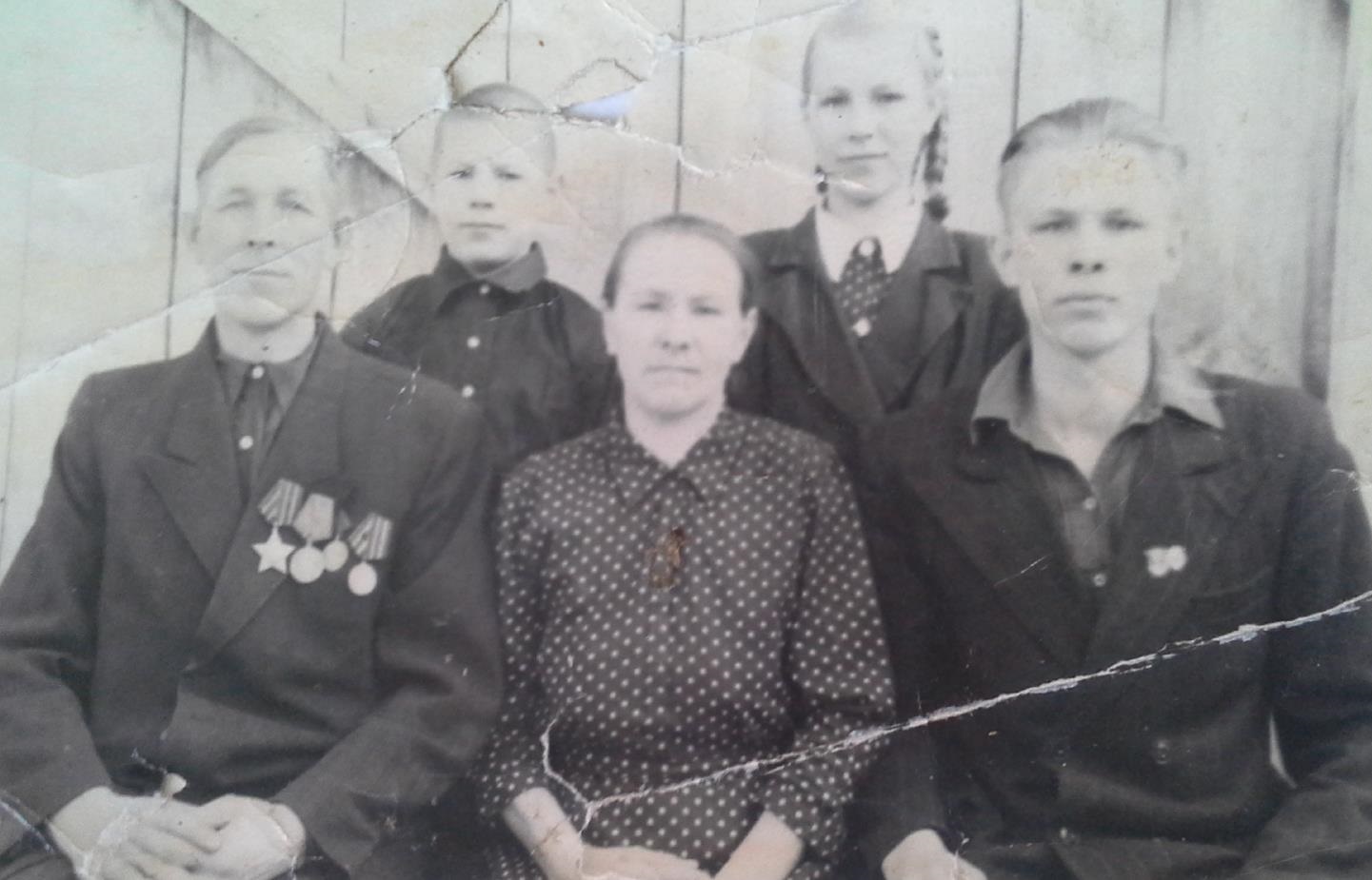 На фото дедушка со своей семьей , 9 мая 1950 года и и в середине 70-х годов с младшим внуком и нашей бабушкой. На третьем фото шествие Бессмертного полка в г. Димитровграде Ульяновской области., 2016 год.