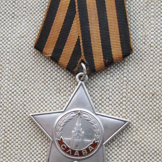 Первой его наградой стал Орден Славы 3 степени. Я прочла, что этот орден почти полностью повторял одну из самых почитаемых еще в дореволюционной России наград — Георгиевский крест.