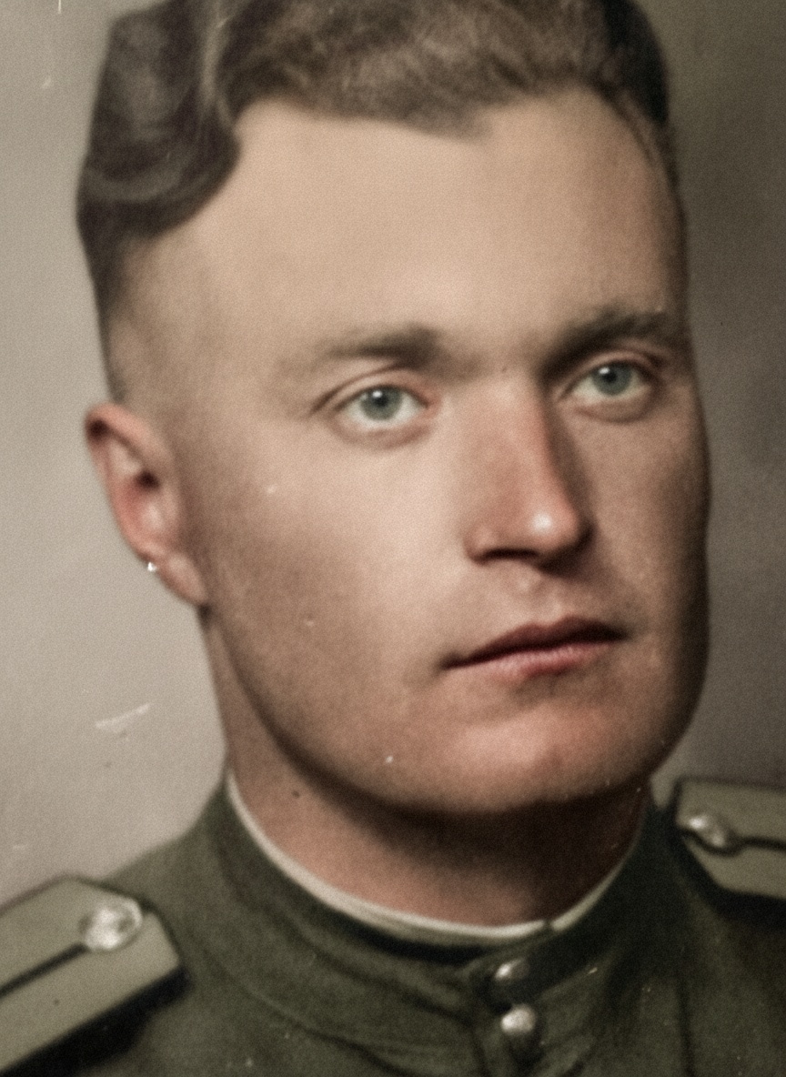 Его первая воинская часть формировалась в 1942 году на левом берегу реки Волга, напротив г. Сталинграда из новобранцев и тех , кто уже участвовал в боях. Сформированная часть прошла пешком вверх вдоль реки, была переправлена на правый берег, а затем пешком спустилась к осажденному Сталинграду.