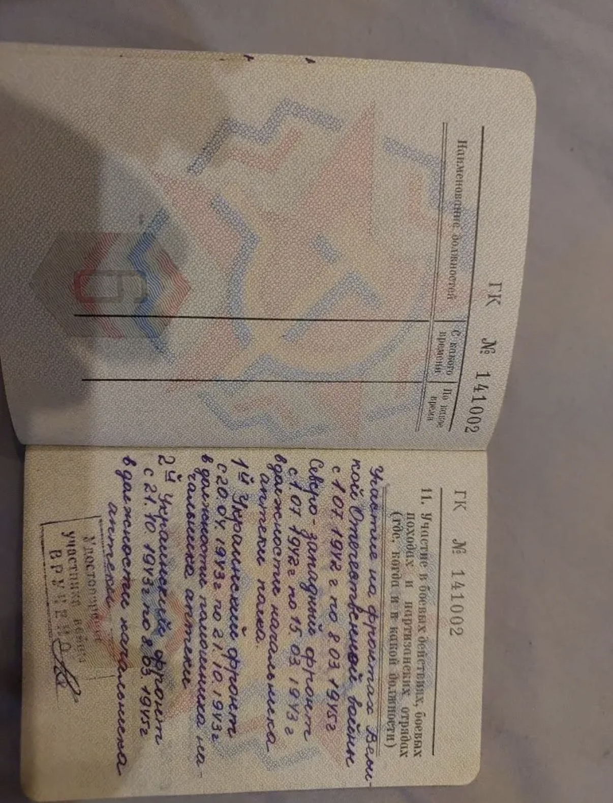 Прохождение службы в Вооружённых Силах Союза ССР с 5.05.1942 г по 19.05.1945 г. : Начальник аптеки полка 05.1942г - 03.1943 г Курсант 03.1943 г - 04.1943 г Начальник аптеки 04.1943 г - 03.1945 г Фармацевт 03.1945 г - 05.1945 г Участие на фронтах Великой Отечественной Войны с 1.07.1942 г по 8.03.1945 г : Северо - Западный фронт с 1.07.1942 г по 15.03.1943 г . в должности начальника аптеки полка . 1-й Украинский фронт с 20.04.1943 г по 21.10.1943 г . в должности помощника начальника аптеки . 2-й Украинский фронт с 21.10.1943 г по 8.03.1945 г . в должности начальника аптеки .