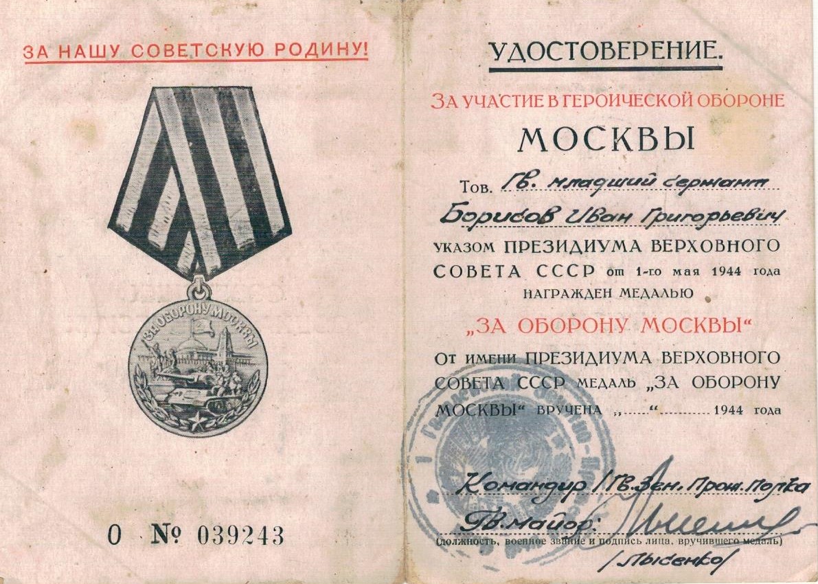 Место призыва Курская обл., Воловской р-н. Дата призыва 05.1939 Боевое подразделение 96 арт. полк Воинская специальность Артиллеристы зенитный артиллерии 85мм пушек, Командир орудия Годы службы 1939-1946