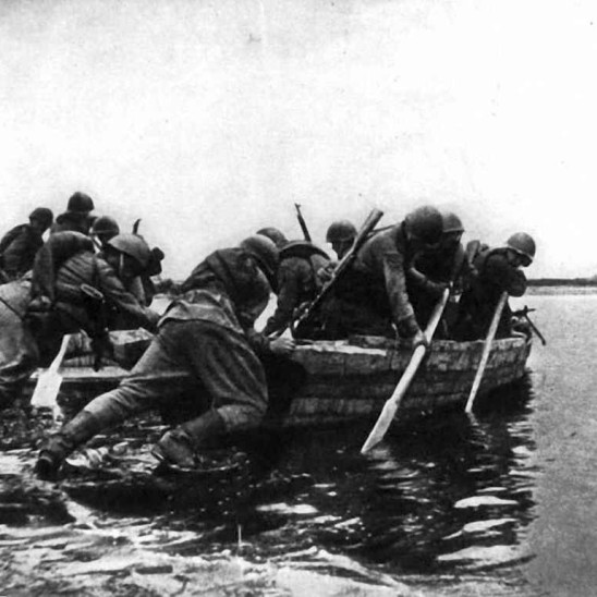 реки под интенсивным артиллерийским огнем. «Командуя расчетом, понтонер старший сержант Боровков под