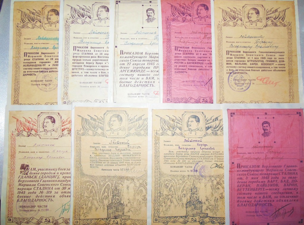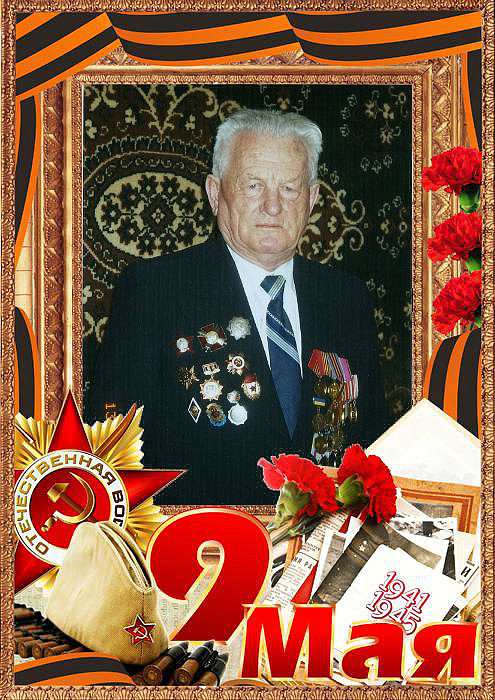 Папа был зачислен на воинскую службу 15 мая 1943 года (данные из его военного билета), после окончания Ленинск-Кузнецкого военного училища младшим лейтенантом убыл на фронт. С октября 1944 года по июнь 1945 года был командиром стрелкового взвода, 412 Стрелкового полка, 1-й Стрелковой дивизии, 70-й Армии, 1 и 2-го Белорусского Фронтов (данные из военного билета).
