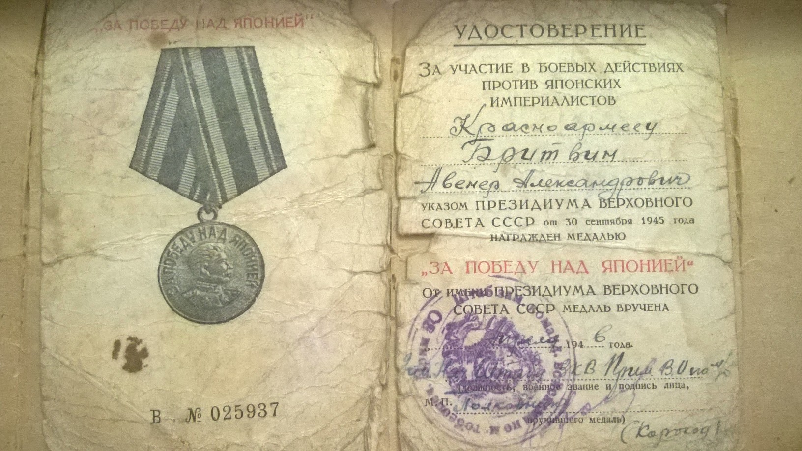 Бритвин Авенир Александрович годы жизни 12.06.1926г. - 24.12.2001г.Родился в д.Черемиски Нюксенского района Вологодской области. Участник ВОВ. Воевал в боях с немецкими захватчиками в составе Карельского фронта в 1943-1944 гг. Ушел воевать в возрасте 17 лет по своей воле. Был связистом. Имеет медаль "За отвагу". Был контужен, на фронте получил обморожение ног. В 1945г. участвовал в боях с японскими милитаристами, где получил медаль "За победу над Японией". Оставался служить в Советской Армии до 1950г. Умер в мирное время в Краснодаре. Его отец Бритвин Александр Иванович, также участник ВОВ, погиб в бою под Ленинградом.У Бритвина Авенира Александровича трое детей, пять внуков и уже семь правнуков, которые знают о нем по рассказам родных.Текст прислала внучка Бритвина Авенира Александровича - Лаврецкая (Бритвина) Ирина Анатольевна