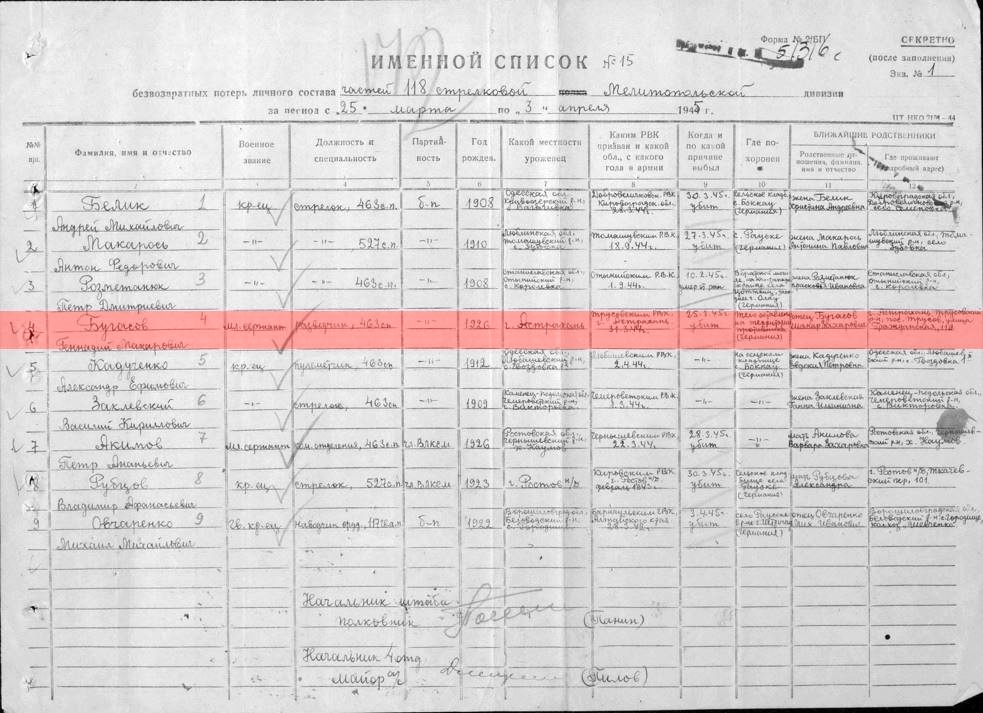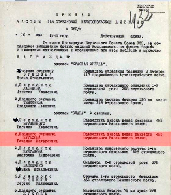 сержант Гений Макарович Бугасов погиб в ночь на 25 марта 1945 года на