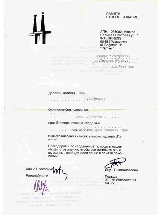 посылал запрос в Польшу. Ему ответили, что после боя Геннадий был похоронен под