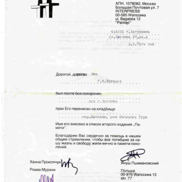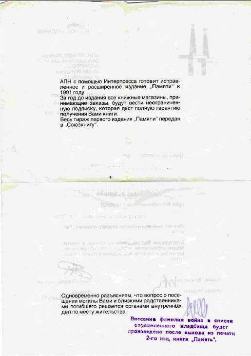 быть опубликован в 1991 году. В "похоронке" имя было указано