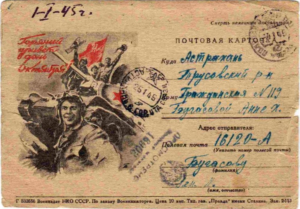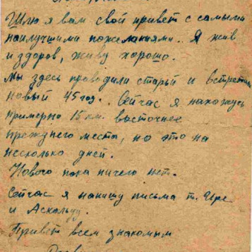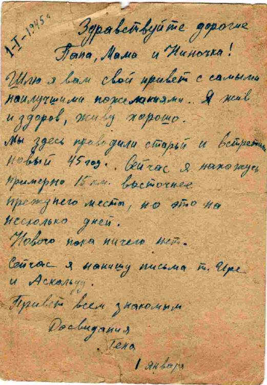 письмо от него датировано 17 марта 1945 года из в/ч 34453 "С".