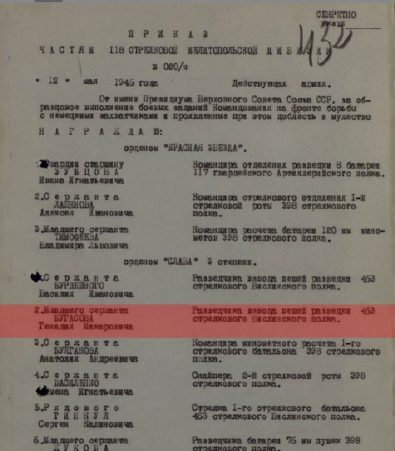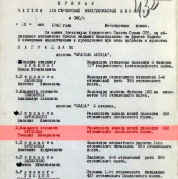 стрелкового полка 118ой стрелковой Мелитопольской дивизии. Был награжден