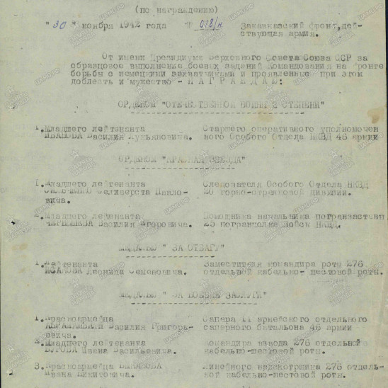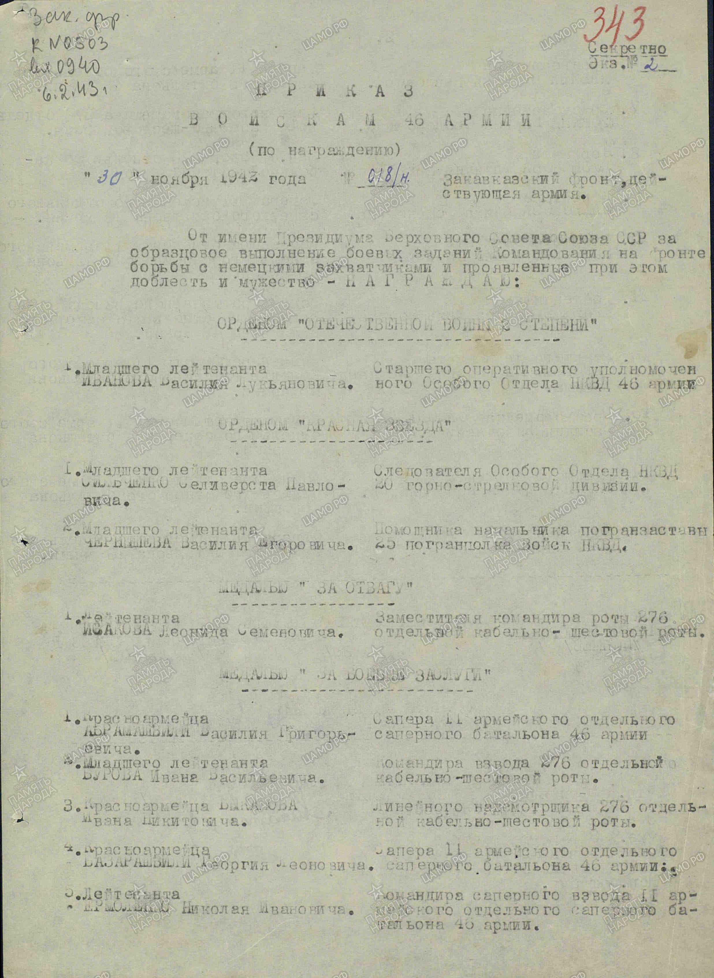 Боевые действия в составе: 46 А 14.01.1942 - 14.01.1942 Оборона перевалов центральной части главного Кавказского хребта 46-й Армией. Август-декабрь 1942 г. 01.08.1942 - 31.12.1942 Медаль «За боевые заслуги» 20.08.1942 - 20.08.1942 Боевые действия в составе: 46 А 25.11.1942 - 25.11.1942 Боевые действия в составе: 46 А 01.12.1942 - 15.12.1942 Боевые действия в составе: 46 А 08.01.1943 - 09.01.1943 Краснодарско-Новороссийская наступательная операция. 11.1-24.5.43 г. 11.01.1943 - 24.05.1943 Боевые действия в составе: 46 А 15.01.1943 - 15.01.1943 Боевые действия в составе: 46 А 18.01.1943 - 18.01.1943 Боевые действия в составе: 46 А 29.01.1943 - 29.01.1943 Боевые действия в составе: 46 А 04.02.1943 - 04.02.1943 Боевые действия в составе: 46 А 07.02.1943 - 07.02.1943 Боевые действия в составе: 46 А 02.03.1943 - 02.03.1943 Боевые действия в составе: 46 А 16.03.1943 - 16.03.1943 Боевые действия в составе: 46 А 05.08.1943 - 10.08.1943 Наступление Воронежского и Степного фронтов с целью выхода на р. Днепр. 25.8-30.9.43 г. 25.08.1943 - 30.09.1943 Боевые действия в составе: 46 А 26.08.1943 - 26.08.1943 Боевые действия в составе: 46 А 23.09.1943 - 23.09.1943 Боевые действия в составе: 46 А 05.10.1943 - 14.10.1943 Боевые действия в составе: 46 А 23.10.1943 - 27.10.1943 Днепропетровская наступательная операция. 23.10-5.11.43 г. 23.10.1943 - 05.11.1943 Наступательная операция на криворожском направлении. 14.11-30.11.43 г. 14.11.1943 - 30.11.1943 Боевые действия в составе: 46 А 18.11.1943 - 29.11.1943 Боевые действия в составе: 46 А 14.12.1943 - 14.12.1943 Боевые действия в составе: 46 А 01.01.1944 - 01.01.1944 Боевые действия в составе: 46 А 13.01.1944 - 28.01.1944 Никопольско-Криворожская наступательная операция. 30.1-22.2.44 г. (Операция 2-го удара) 30.01.1944 - 22.02.1944 2-й удар. Разгром на правобережной Украине. февраль-март 1944 г. 01.02.1944 - 31.03.1944 Боевые действия в составе: 46 А 12.02.1944 - 12.02.1944 Боевые действия в составе: 46 А 20.02.1944 - 20.02.1944 Боевые действия в составе: 46 А 25.02.1944 - 25.02.1944 Боевые действия в составе: 46 А 03.03.1944 - 03.03.1944 Березнеговато-Снигиревская наступательная операция. 5-18.3.44 г. (Операция 2-го удара) 05.03.1944 - 18.03.1944 Боевые действия в составе: 46 А 17.03.1944 - 17.03.1944 Боевые действия в составе: 46 А 22.03.1944 - 22.03.1944 Боевые действия в составе: 46 А 24.03.1944 - 02.04.1944 Разгром одесской группировки противника. 28.3-14.4.44 г. (Операция 3-го удара) 28.03.1944 - 14.04.1944 3-й удар. Разгром немецко-румынских войск в Крыму и под Одессой. Апрель-май 1944 г. 01.04.1944 - 31.05.1944 Боевые действия в составе: 46 А 04.04.1944 - 04.04.1944 Боевые действия в составе: 46 А 12.04.1944 - 19.04.1944 Боевые действия в составе: 46 А 01.07.1944 - 01.07.1944 Боевые действия в составе: 46 А 01.08.1944 - 01.08.1944 7-й удар. Разгром немецко-румынских войск в районе Кишинев-Яссы. Август 1944 г. 01.08.1944 - 31.08.1944 Боевые действия в составе: 46 А 07.08.1944 - 07.08.1944 Боевые действия в составе: 46 А 10.08.1944 - 10.08.1944 Боевые действия в составе: 46 А 14.08.1944 - 14.08.1944 Боевые действия в составе: 46 А 20.08.1944 - 20.08.1944 Ясско-Кишиневская наступательная операция. 20.8-27.8.44 г. (Операция 7-го удара) 20.08.1944 - 27.08.1944 Боевые действия в составе: 46 А 23.08.1944 - 23.08.1944 Боевые действия в составе: 46 А 24.08.1944 - 24.08.1944 Боевые действия в составе: 46 А 26.08.1944 - 26.08.1944 Боевые действия в составе: 46 А 27.08.1944 - 27.08.1944 Боевые действия в составе: 46 А 30.08.1944 - 30.08.1944 Освобождение Болгарии. Сентябрь 1944 г. (Операция 7-го удара) 01.09.1944 - 30.09.1944 Боевые действия в составе: 46 А 02.09.1944 - 02.09.1944 Боевые действия в составе: 46 А 04.09.1944 - 04.09.1944 Боевые действия в составе: 46 А 06.09.1944 - 06.09.1944 Боевые действия в составе: 46 А 09.09.1944 - 09.09.1944 Боевые действия в составе: 46 А 12.09.1944 - 12.09.1944 Боевые действия в составе: 46 А 15.09.1944 - 15.09.1944 Боевые действия в составе: 46 А 20.09.1944 - 20.09.1944 9-й удар. Разгром немецко-венгерских войск на территории Венгрии. Октябрь-декабрь 1944 г. 01.10.1944 - 31.12