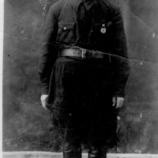 "Мой дед по материнской линии. По рассказам его супруги, моей бабушки Царевой Екатерины Парфеновны 1918 – 2010 гг., до войны они жили в Хиславичском р-на Смоленской области. Дед работал главным бухгалтером на спирт заводе. В 1937 г. у них родилась дочь Тамара, моя будущая мама, потом примерно через 2-3 года у них родилась вторая дочь Дина, но она умерла, не дожив до годовалого возраста. В 1941 г. в конце июля моего деда призвали в ряды Советской Армии. Моя бабушка рассказывала, что дед с войны присылал очень мало писем, я сама, уже будучи шестиклассницей, читала эти письма – треугольники, их было всего 4 или 6 штук. В письмах с фронта дед практически ничего о себе не сообщал, мы даже не знаем до сих пор, в каких войсках он служил. Все письма были почти с одним и тем же текстом: «Здравствуйте мои дорогие, жена Катя и дочь Тома, у меня все хорошо, Катя, береги Тому и себя, мы победим». В одном из писем прислал это фото. Бабушка хранила эти драгоценные треугольники и фото всю жизнь, она прожила почти 92 года, и всю жизнь вспоминала своего мужа, она всегда говорила о нем, как о живом. Зимой 1943 г. бабушке пришел документ о том, что Царев Григорий Игнатьевич пропал без вести. В середине 1970-х годов к нам в гости из Новосибирска приезжала родная сестра моего деда Арина Игнатьевна, она тоже не верила в то, что дед пропал без вести или погиб. Арина Игнатьевна отправляла много запросов во всевозможные военные архивы. Из Ленинградского военного архива ей пришел ответ, что в феврале 1943 г. Царев Григорий Игнатьевич на самолете раненый был доставлен в один из Ленинградских госпиталей, где через 2 недели и скончался от ран и был похоронен в Ленинграде в братской могиле, она даже указала в каком именно месте, но я, будучи ребенком, не вникала в подробности ее рассказа, о чем сейчас очень сожалею".