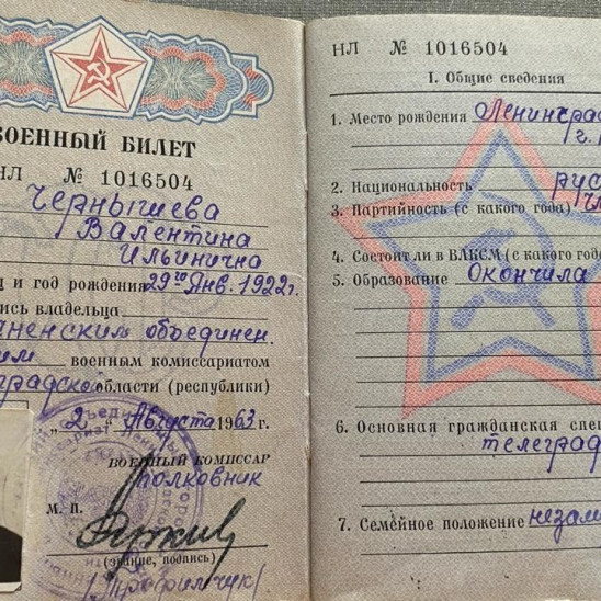 Участвовала в Великой Отечественной войне с 9 июля 1941г. по 9 мая 1945г. Телеграфистка-бодистка. Обеспечивала связь между командующими Советских войск во время войны. Имеет ранение в 1942г. (Ленинградский фронт). Награждена орденом "Отечественной войны" II степени, медалью "За оборону Ленинграда", медалью "За победу над Германией в ВОВ" и др. наградами. После войны работала телеграфисткой. Ветеран Труда.