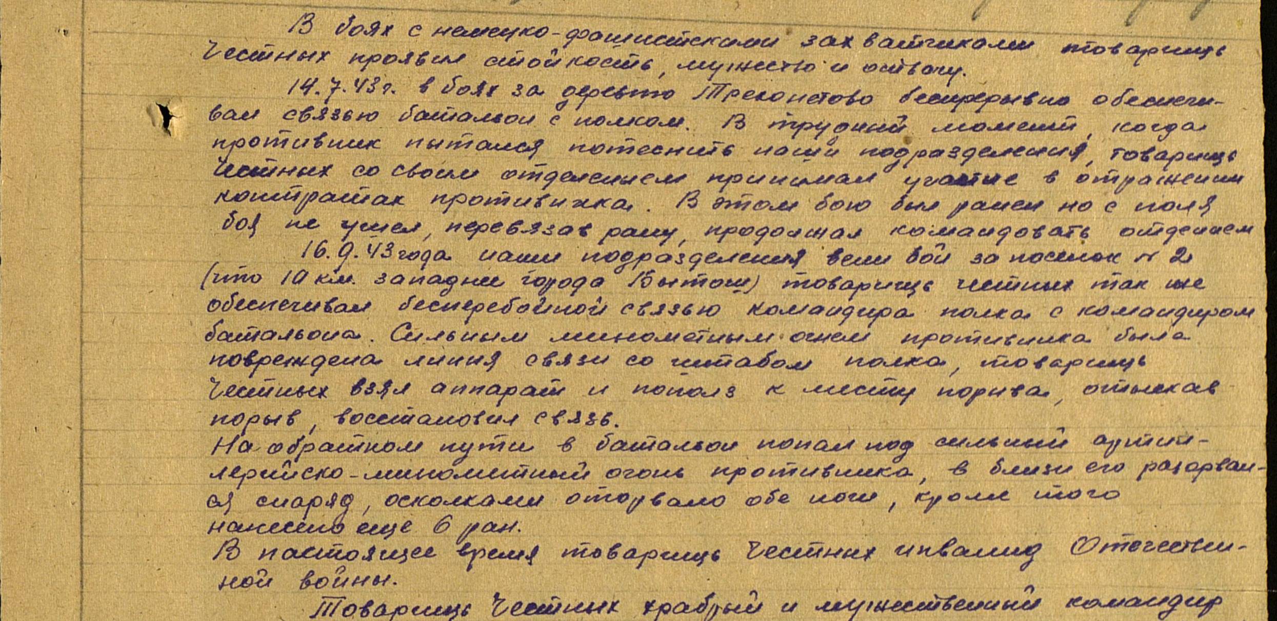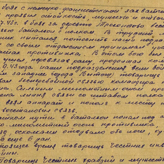 города Бытошь для обеспечения связи командира под сильным минометным огнем