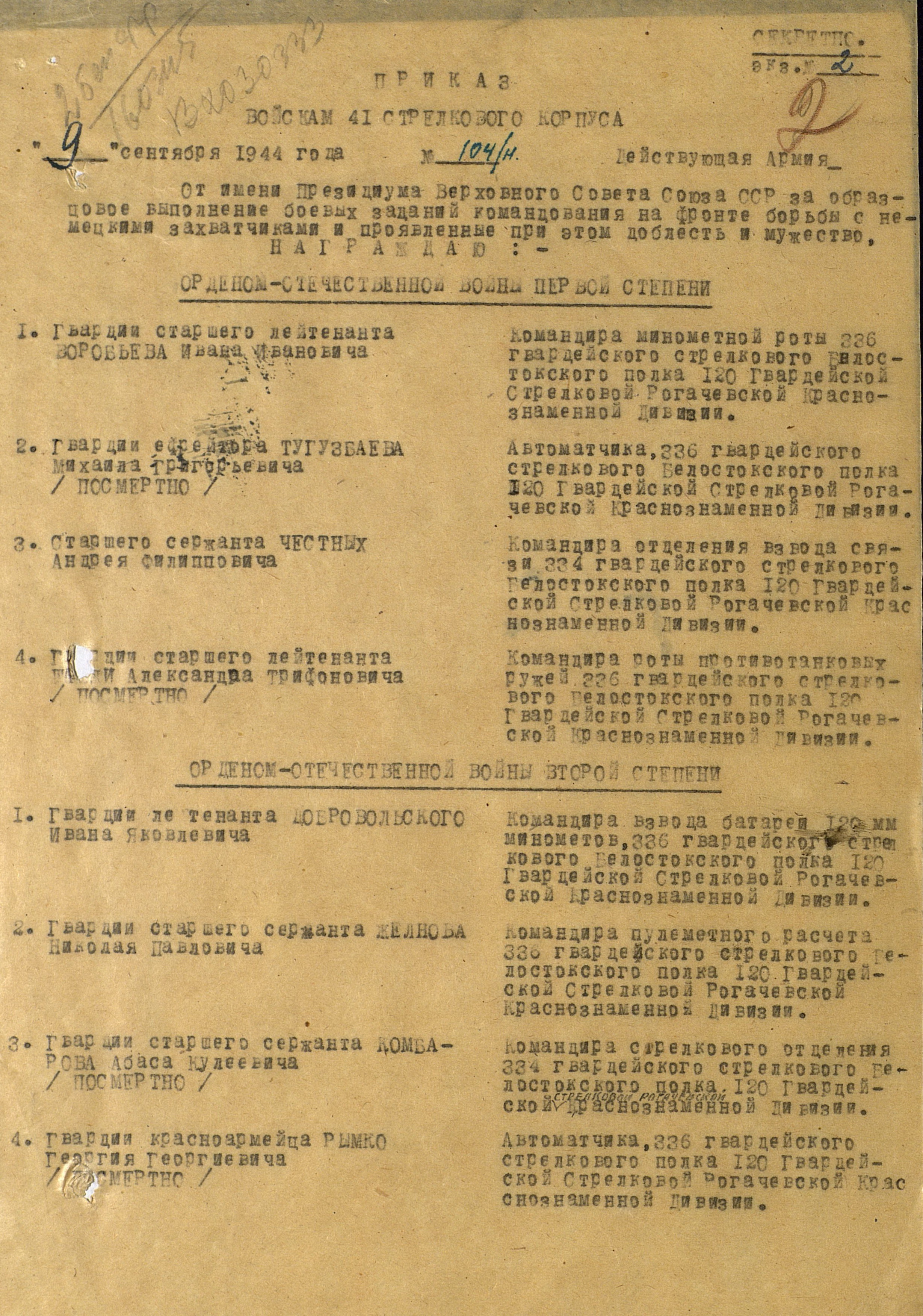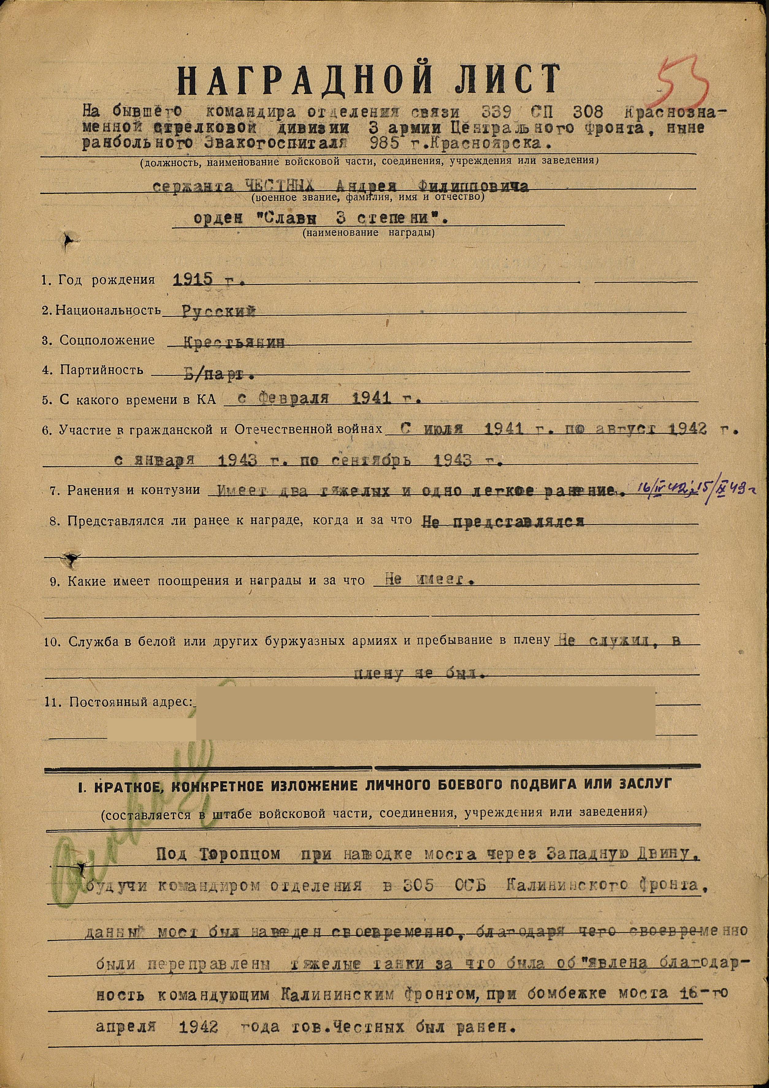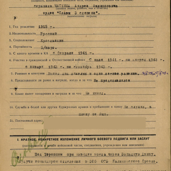 Краснознаменной дивизии сержантом, а затем и старшим сержантом. Имеет «Орден