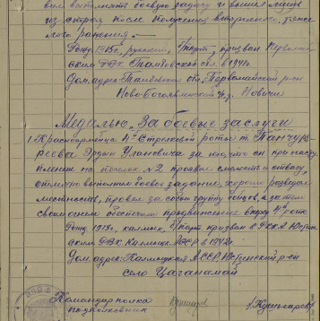 войны I степени», Медаль «За отвагу». В 1943 году в бою близ