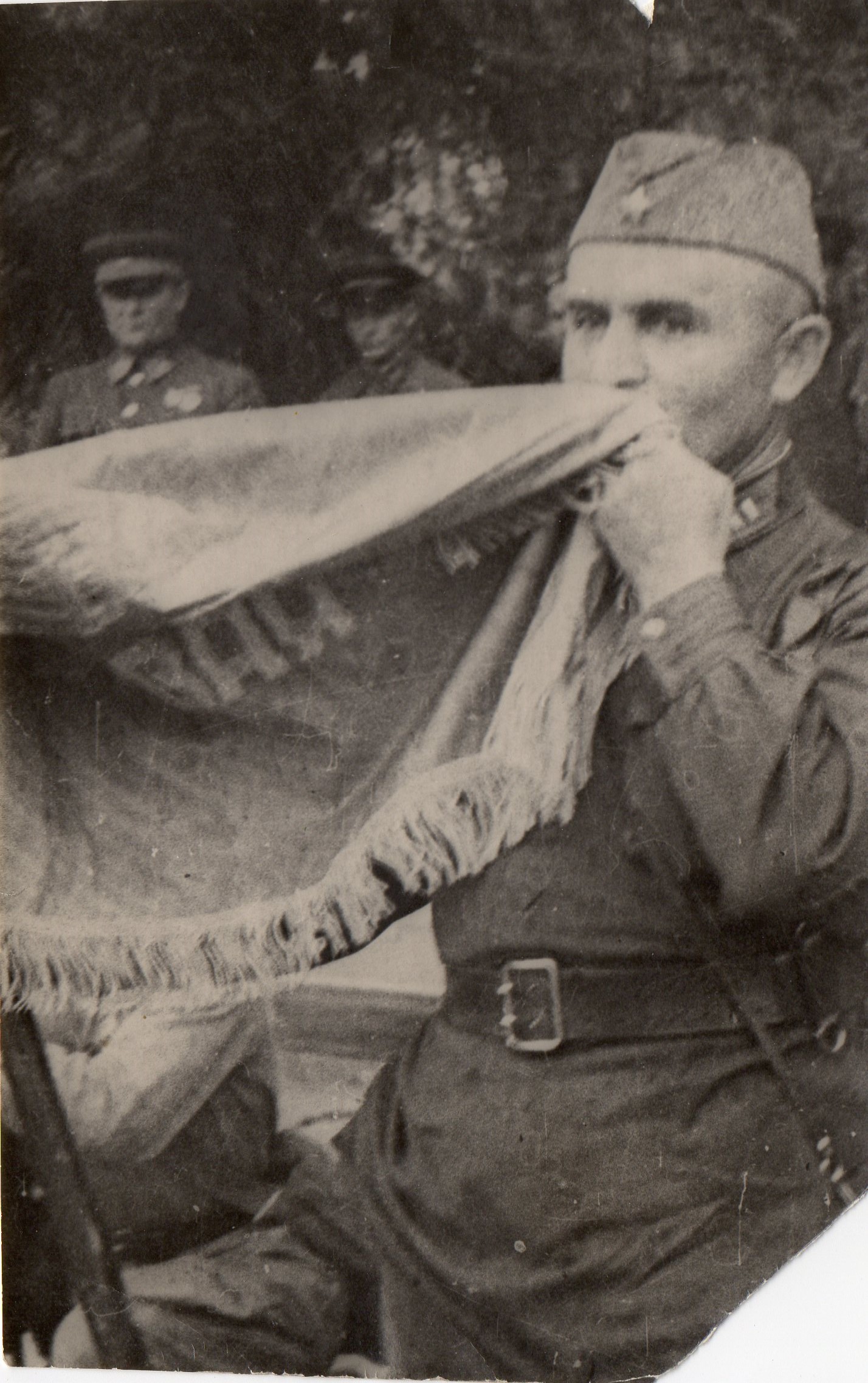 Первое наступление воинов бригады оказалось безуспешным. Вот тогда комбат отдал распоряжение вынести Знамя. С группой автоматчиков и стрелков он устремился вперед.