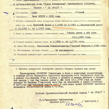 человека-«За Боевые Заслуги».Награждение за подвиг в Великих Луках продолжалось