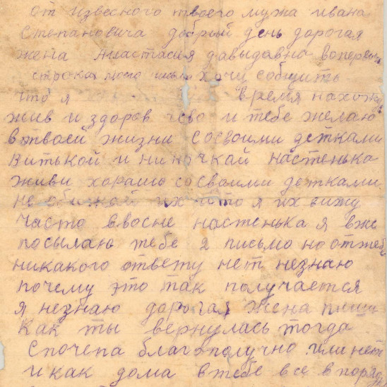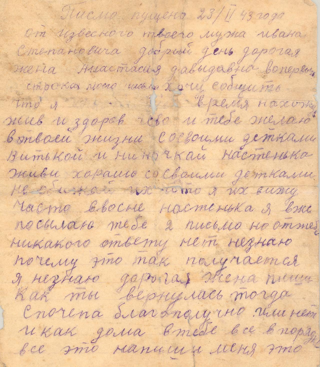 жене, Анастасии Давыдовне. Письмо датировано 23 февраля 1943 г.