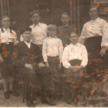 Призвали деда в первые дни войны, несколько месяцев он прослужил на фронте, а потом попал в плен и всю оставшуюся войну он провел в концлагере в Дании, по окончании войны был освобожден из лагеря и помещен в военный госпиталь, подлечившись вернулся домой. В послевоенные годы дед работал председателем местного колхоза, т.к имел хорошее образование. О годах войны в доме деда говорить было не принято, да и мы были еще малы, бабушка и дед воспитали шестерых детей, семья у них была крепкой и дружной.