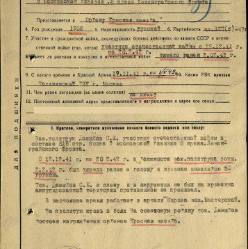 Давыдов Степан Егорович был призван на службу 19.11.1941г.