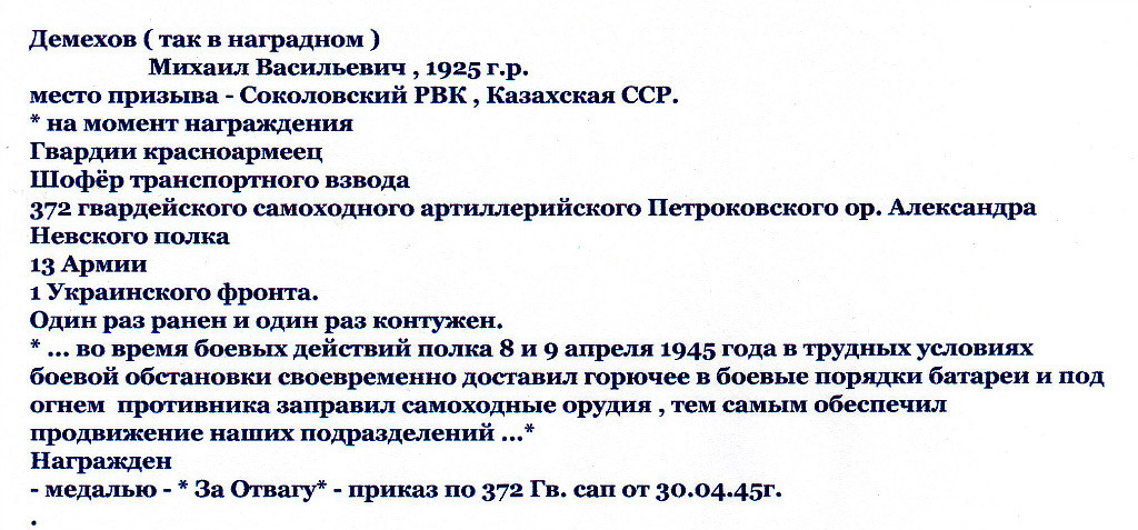 В 1990г.у папы Добринский военкомат отобрал все документы,и сказали что папа не воевал.Папа очень переживал,заболел и в 1993 г.умер.И только спустя 20 лет.я узнала что папа воевал.через орхив.