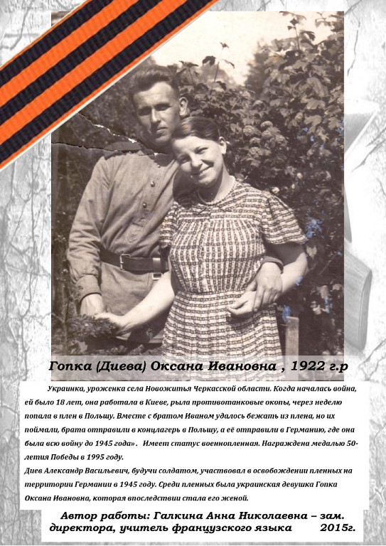 Диев Александр Васильевич – 1919 г.р., уроженец п. Никологоры, Ивановской (ныне Владимирской, прим. автора) области. Согласно наградного листа, А.В. Диев состоял в рядах РККА в звании старший сержант с 1939 г., призван на фронт