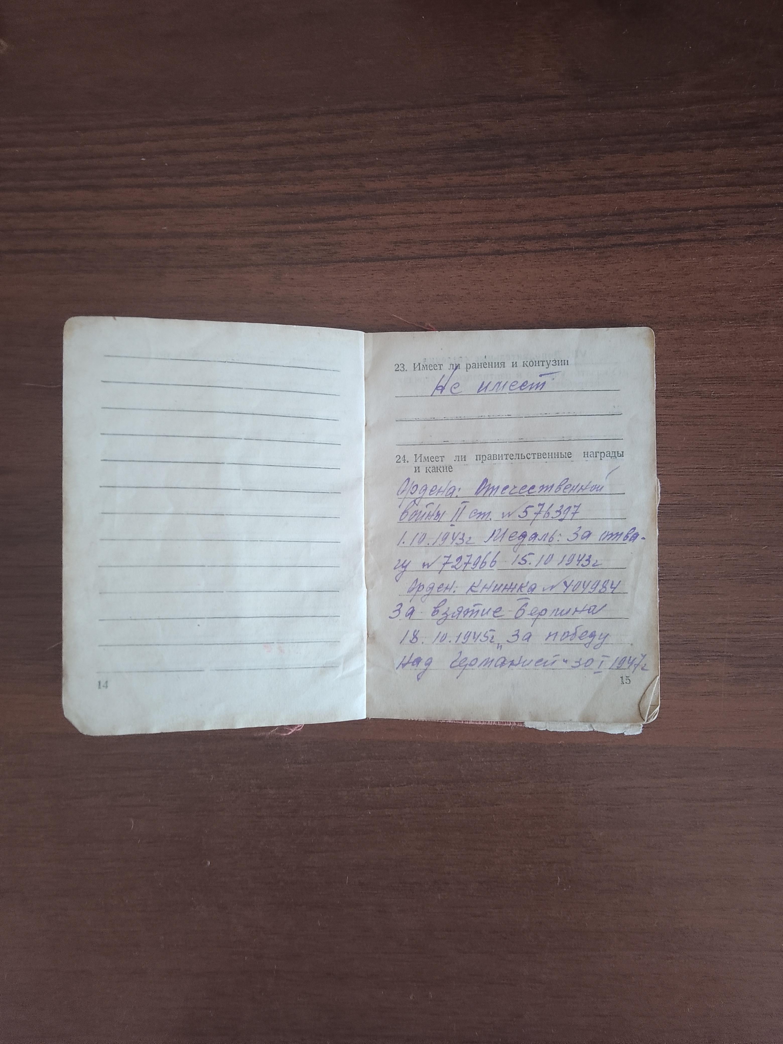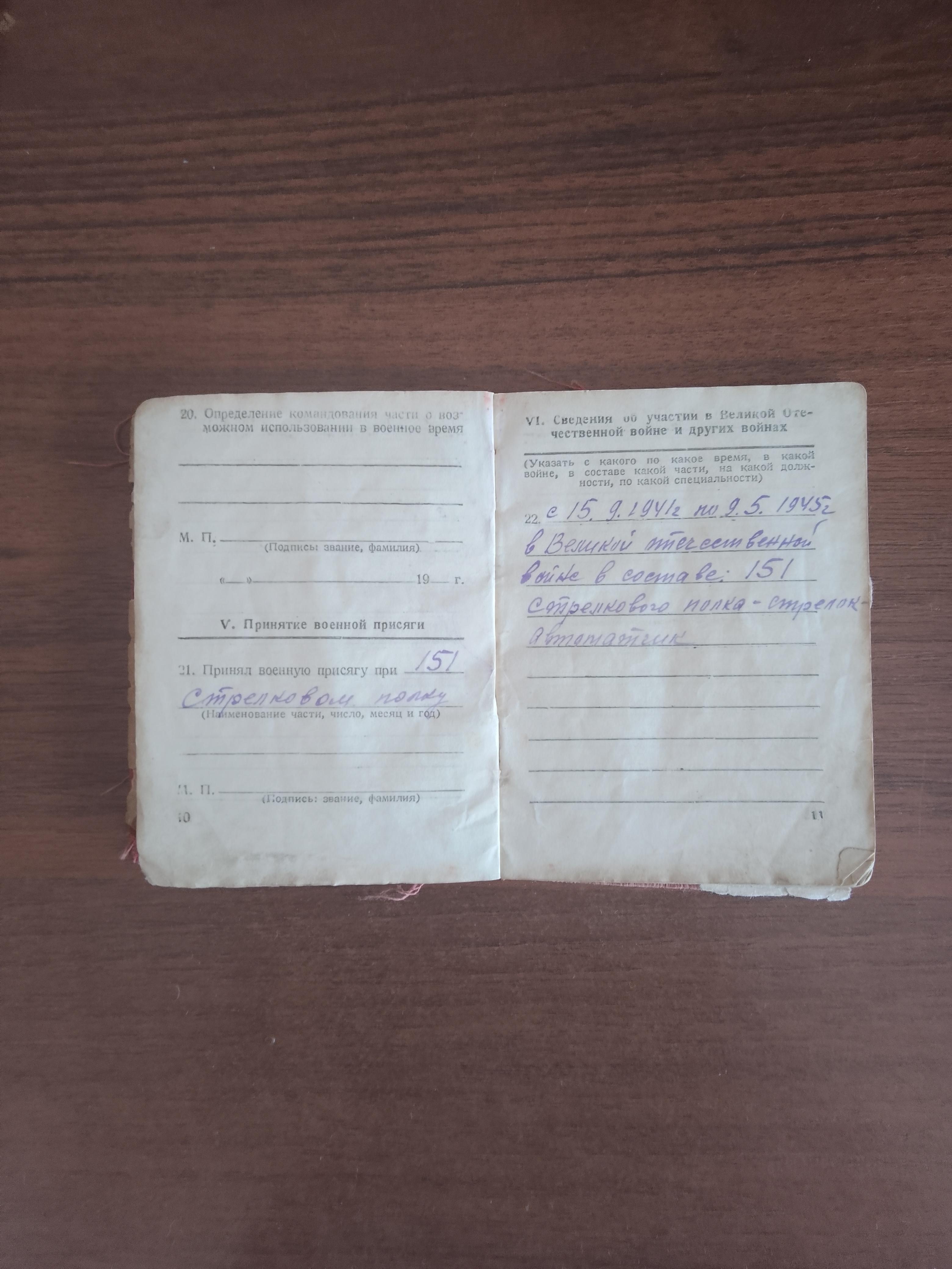 Родился в Воронежской губернии 10 апреля 1908 г., закончил три класса Кужновской начальной школы, работал колхозником, был в браке с Зибаровой Анной Федоровной, дети: Александр, Иван 23.10.1928 г., Анна 15.08.1940 г., был призван по мобилизации Мордовским РВК Тамбовской области 01.09.1941 г. в 151 стрелковый полк, демобилизован 25.09.1945 г. Уехал с семьей в 1957 г. в Сибирь, жил в г. Усолье- Сибирское.