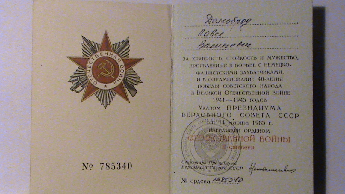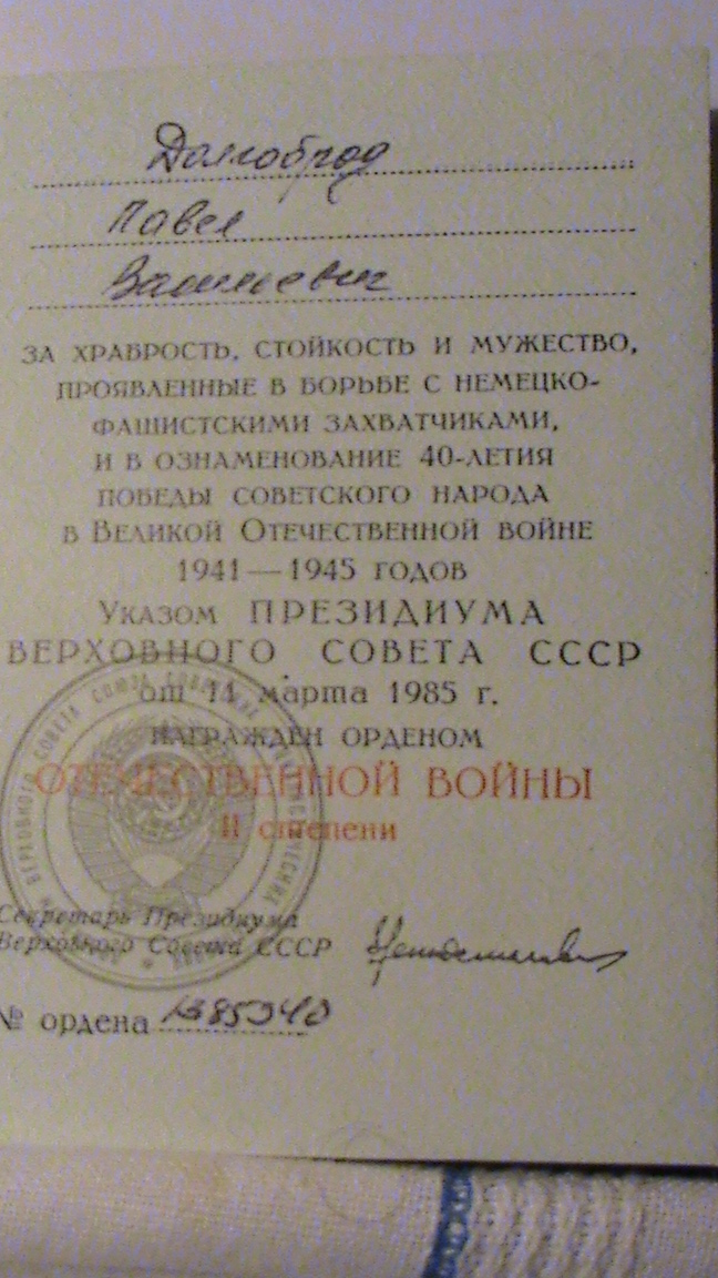 Отечественной войне 1941 – 1945 г.г.» , которой награждён был младший сержант