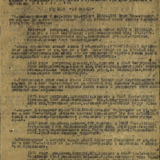 Награжден медалью "За отвагу" за то, что он в бою 09.06.1944 за д. Барсуки участвовал в отражении 4 контратак противника.