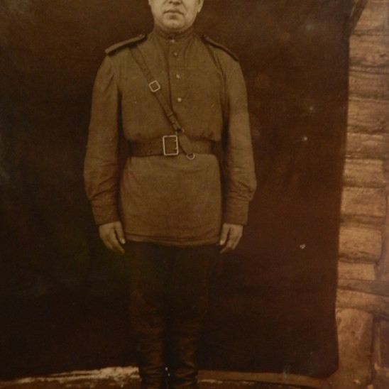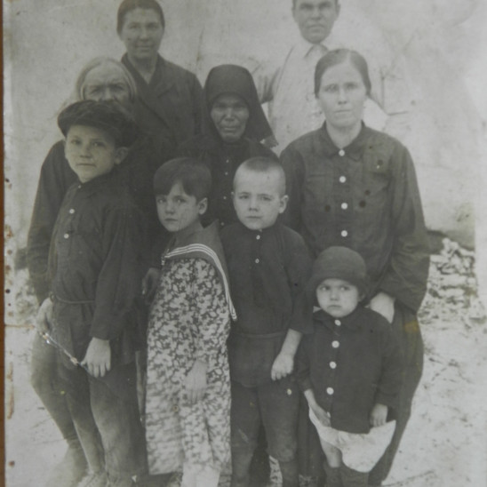 Это мой прадед. У него осталось шестеро детей. Моя бабушка ( на фото в платье с воротником) рассказывала, что он пропал без вести в Польше в конце войны. Только несколько лет назад я нашла о нем информацию. Жаль бабушка уже не узнает, где он похоронен.